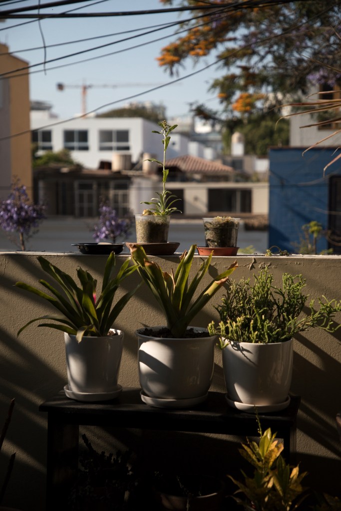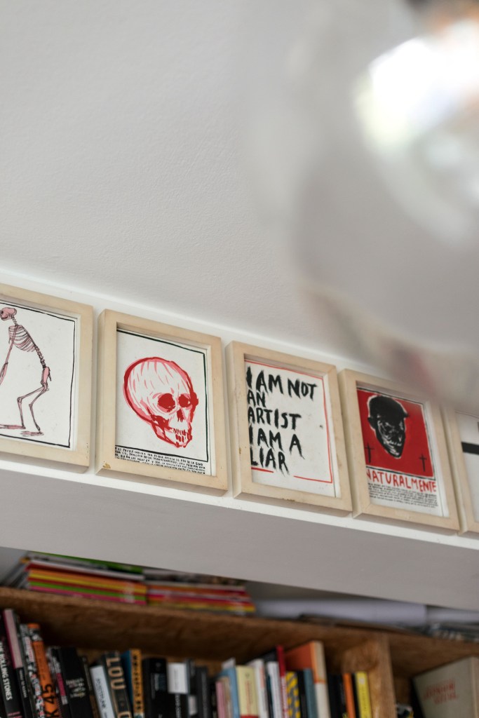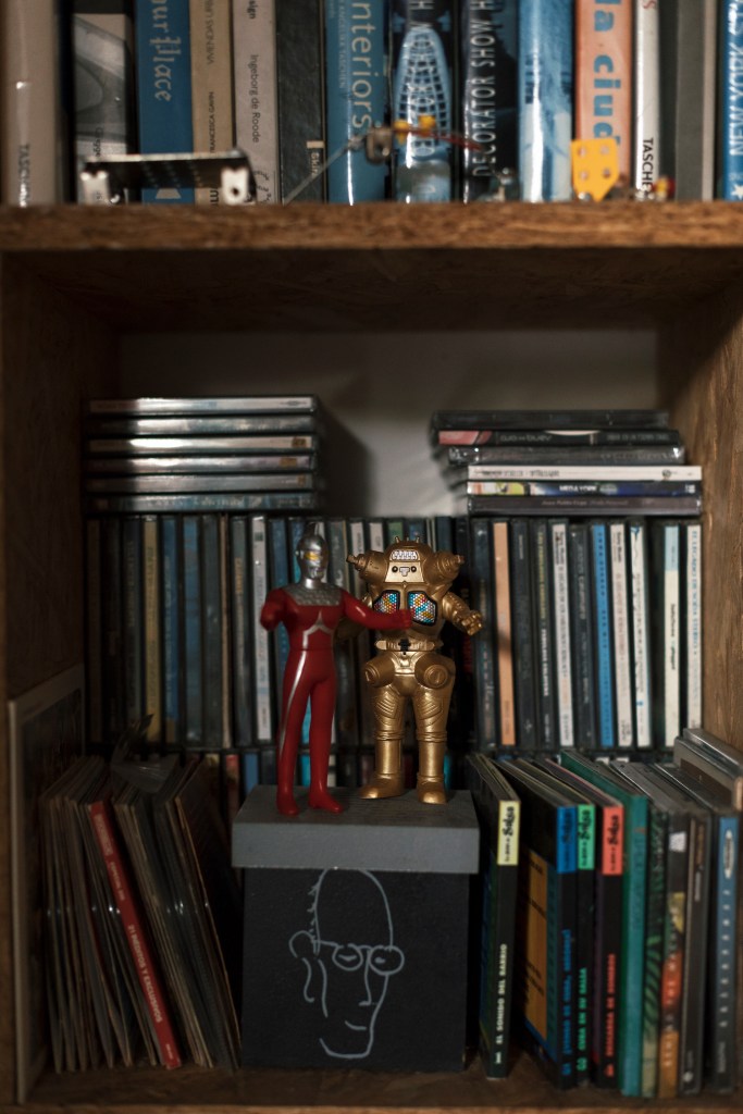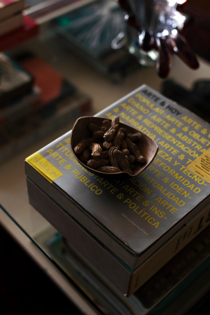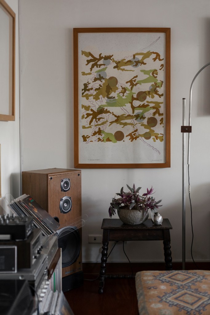 Barranco los recibió con su vida de barrio, la caminata a la bodega, los amigos cerca y, encima de todo, con una terraza que llenaron de plantas. Esa terraza fue salvadora durante la cuarentena, y aún lo es: deja que el sol entre, hay cierta conexión con el exterior, con los colores de la calle, es un buen sitio para trabajar y tomarse unas cervezas. Goster llegó con discos, libros y piezas de arte que ha ido coleccionando con los años.
