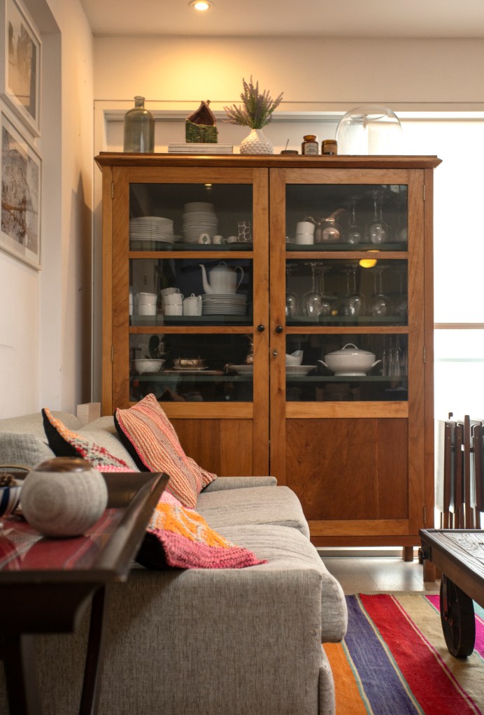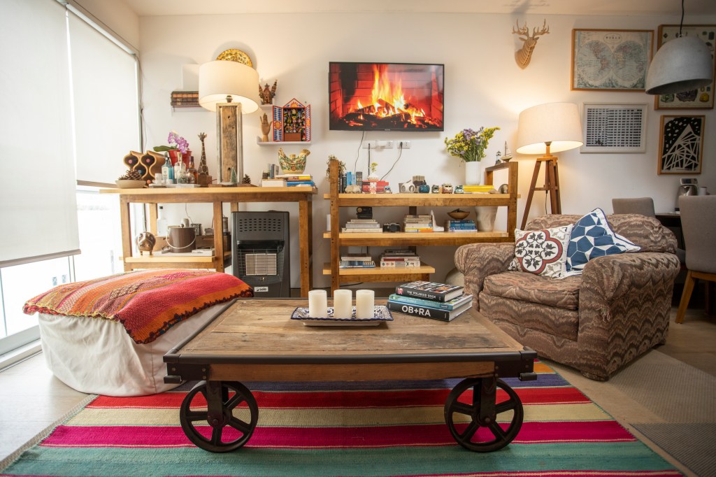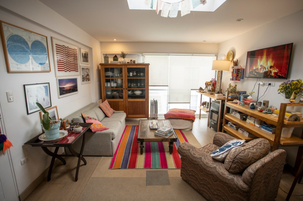 Nuestra mirada cambia. Eduardo y María Luisa volvieron a mirar el departamento donde habían vivido tantos años. Se deshicieron de varias cosas porque ocupaban espacio y les quitaba energía. No les preocupa que el lugar se vea absolutamente prolijo, pero estaba demasiado recargado; después de la depuración están a gusto. Por supuesto que también han sufrido con el encierro. El dúplex tiene el área social, los dormitorios y la zona de servicios, todo en la primera planta, y el segundo nivel es una gran terraza de aproximadamente 120 metros cuadrados. Con una hija pequeña (que ahora tiene dos años), seguir siendo productivos era un reto.