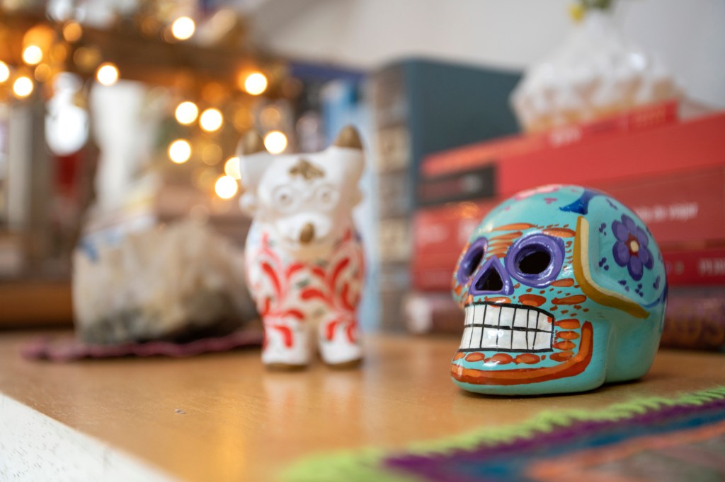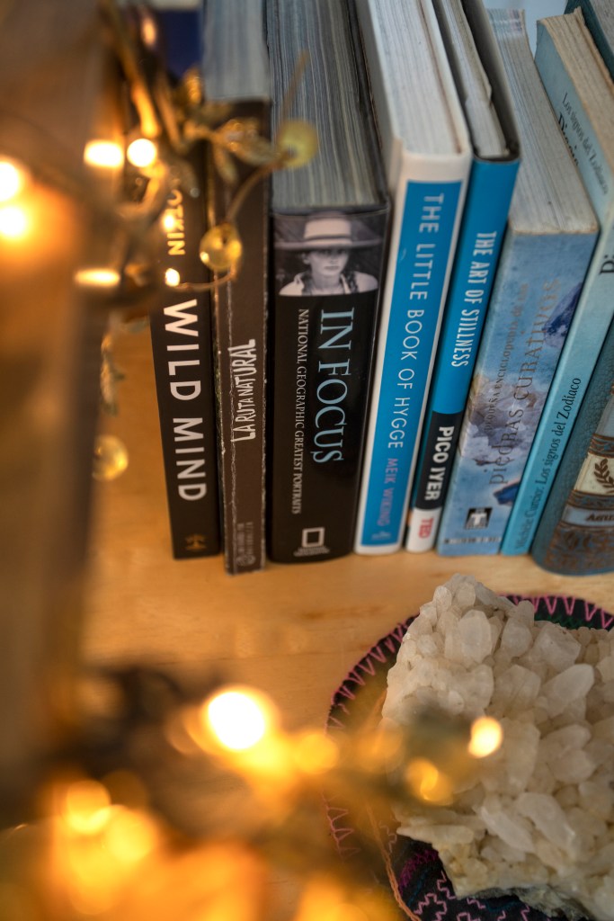“Hemos querido conectar con todo lo que nos gusta. Tenemos recuerdos de viajes, desde un hipopótamo de madera de África y recuerdos de Indonesia y Alaska, hasta telas andinas. Por nuestra luna de miel nos fuimos a correr tabla a Costa Rica y hacer snowboard a Lake Tahoe. Somos acumuladores de chucherías que te traes del viaje. Las paredes están llenas de fotos y adornitos, tenemos las colecciones de revistas Natural Geographic y guías de viaje antiguas. A María Luisa también le gusta la fotografía, así que tenemos cámaras de todo tipo por la casa. Nos rodeamos de las cosas que nos gustan, verlas nos motiva a agarrarlas, a tocarlas”.