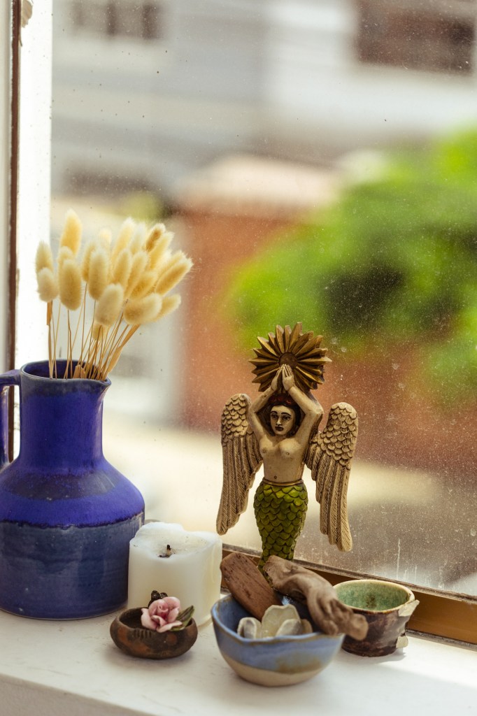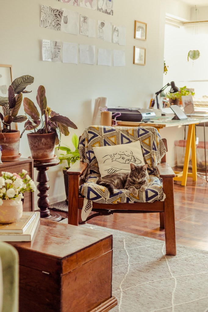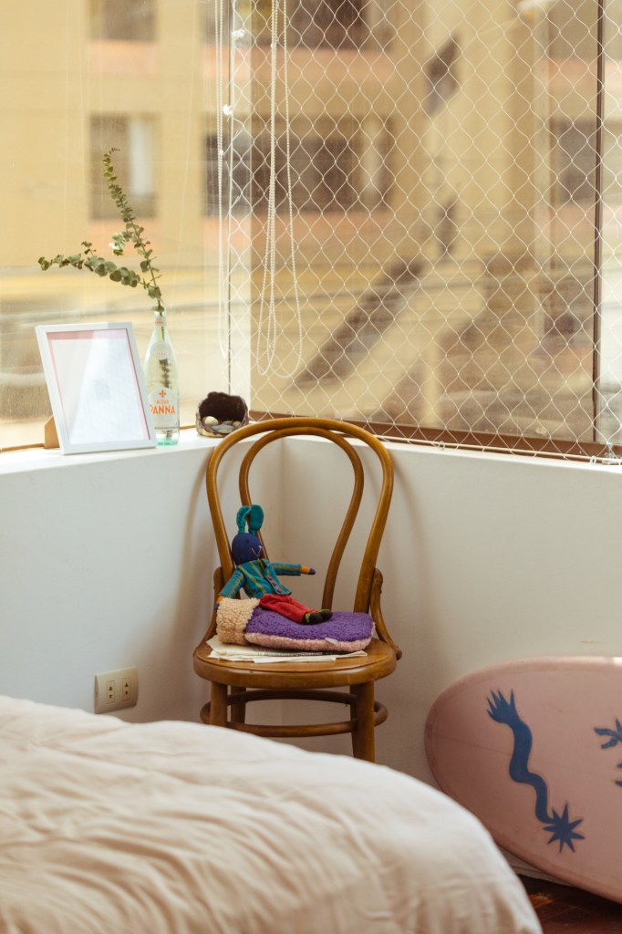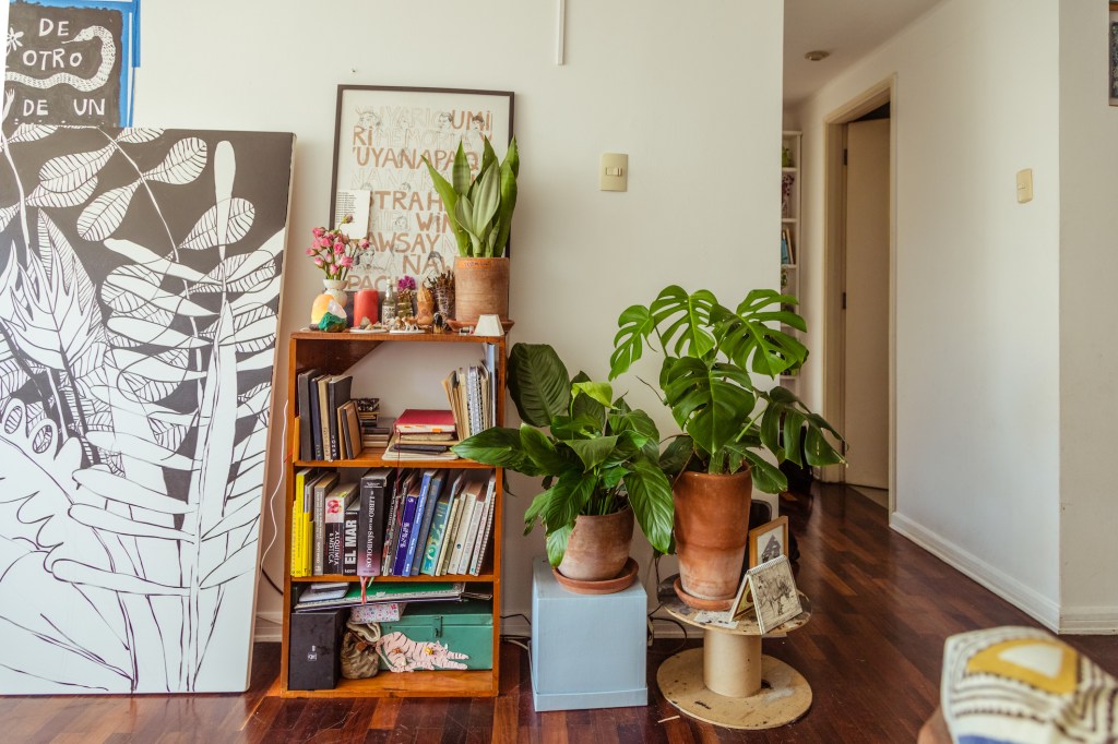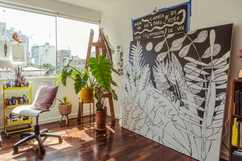 “Me parece chévere poder generar un espacio donde te sientas segura, con estos objetos que tienen energía viva porque yo les doy un valor. A veces pienso en irme de la ciudad, pero inmediatamente me acuerdo de mis plantas… ¿Qué haría con ellas? ¿Y mis mesas de trabajo? ¿O los dibujos de mis amigos? Sé que tengo que aprender a dejar ir, que tengo que saber moverme, y esa es una meta”.