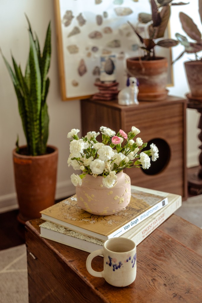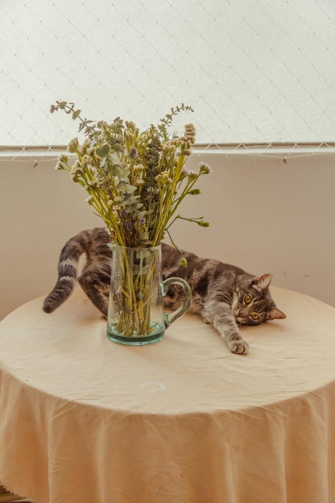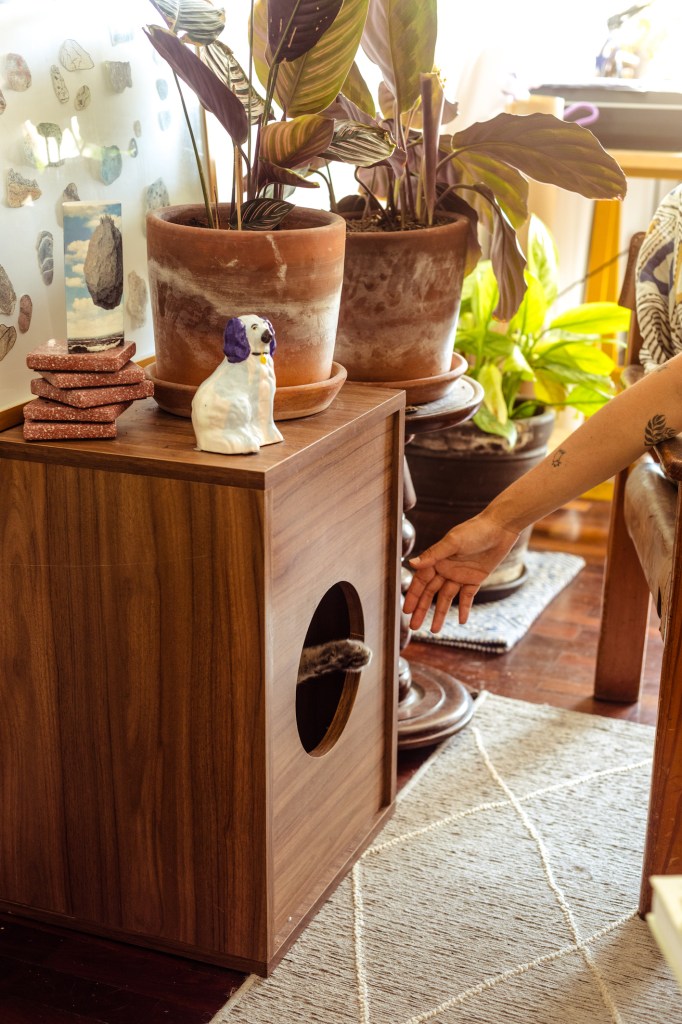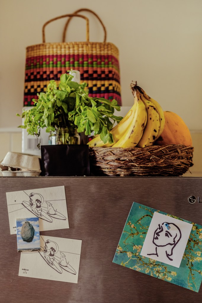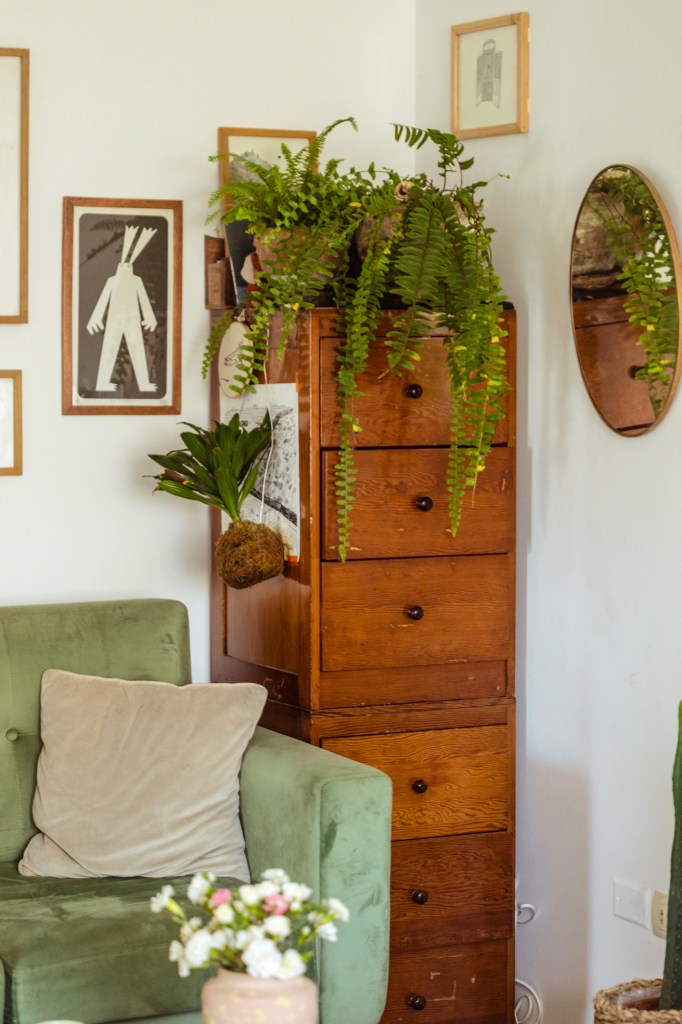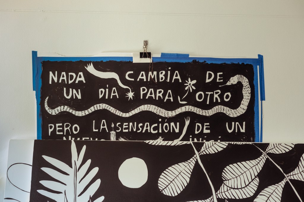 “Me parece chévere poder generar un espacio donde te sientas segura, con estos objetos que tienen energía viva porque yo les doy un valor. A veces pienso en irme de la ciudad, pero inmediatamente me acuerdo de mis plantas… ¿Qué haría con ellas? ¿Y mis mesas de trabajo? ¿O los dibujos de mis amigos? Sé que tengo que aprender a dejar ir, que tengo que saber moverme, y esa es una meta”.