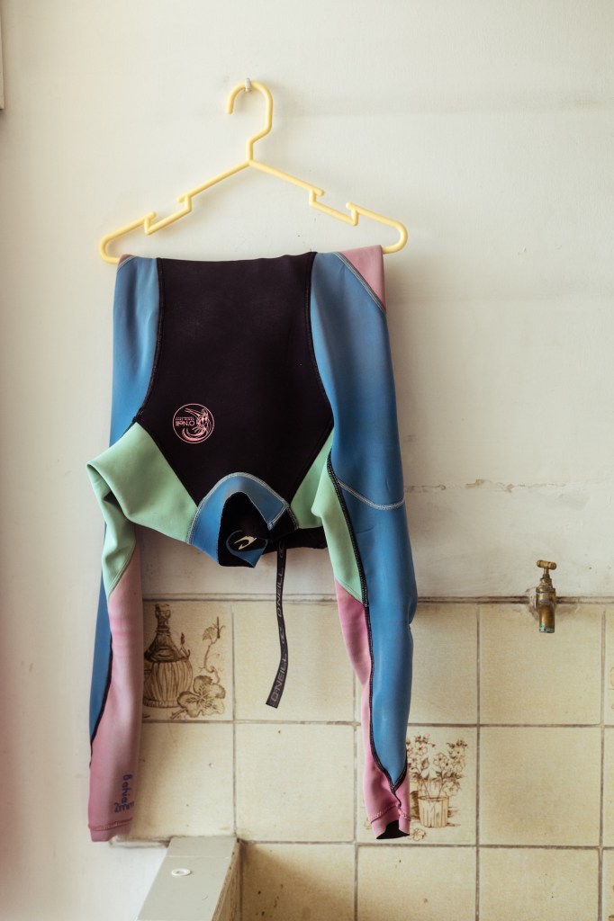 Si tuviera que elegir, diría que esta es su calle favorita de todo Lima. El mar está a una caminata de 15 minutos que ella hace todas las mañanas, ida y vuelta, con su tabla de surf. Desde que se mudó aquí, empieza sus días corriendo olas. Poco a poco fue trayendo muebles: unos archivadores y repisas de madera que restauró; cajones que mandó a hacer para su gato Laurel; el sofá pequeño que tapizó en un verde pastel muy lindo. En lugar de comedor montó su taller: puso la mesa de dibujo cerca a la ventana y dejó una pared libre para poder trabajar pintura en mayor formato. Todo se fue armando.