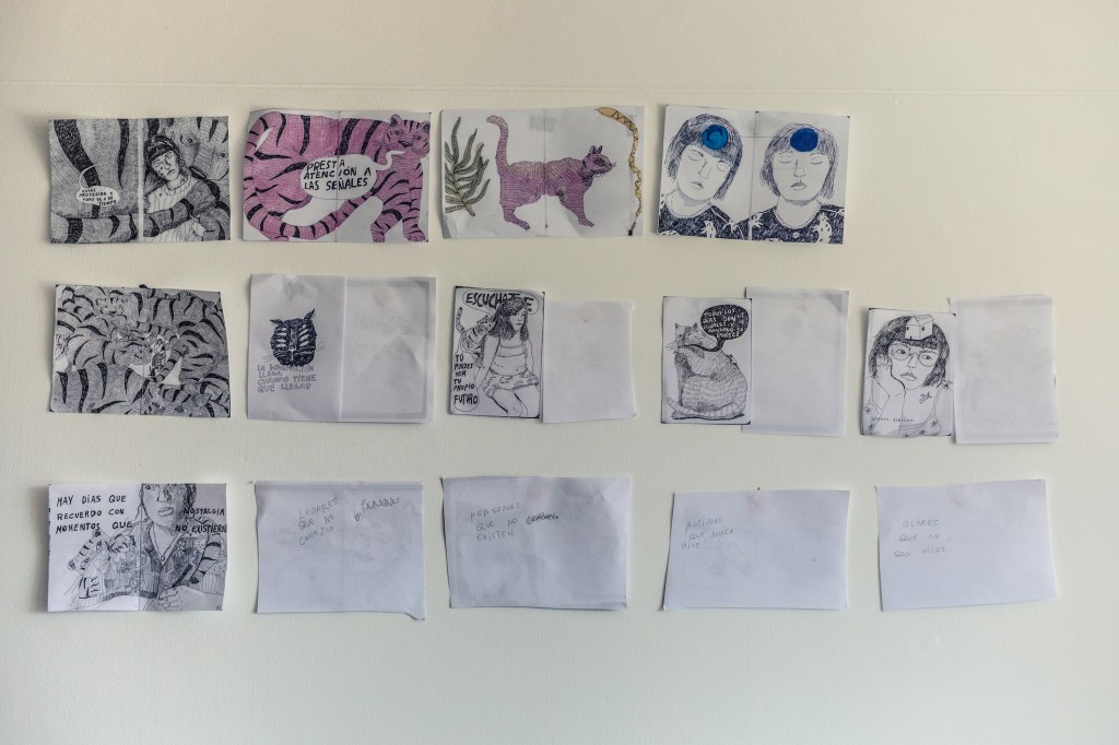 “Trato de responderme tantas cosas. En especial sobre salud mental: estos meses he sido muy introspectiva, tratando de entenderme realmente. La pandemia me ha chocado. Siento que mis dibujos son respuestas para mí misma, pero entiendo que muchos pueden sentirse identificados. A mí me sigue sorprendiendo esa recepción que tengo… ¡No entiendo muy bien ni cómo pasó! Empecé a usar redes sociales para difundir mi chamba, pero todo ha sido muy orgánico y cada vez que recibo un encargo grande digo ¡wow! y resulta siendo una cadena de cosas… Ahora tengo que encontrar un equilibrio para mis propios proyectos. Es difícil ser dibujante independiente en una ciudad como Lima: tienes que trabajar mucho para otros, para así costearte la vida. Mi meta es poder vivir más de las cosas que hago para mí. Quiero hacer un libro y estoy trabajando en una tienda web. Quiero vivir de lo que yo hago”.