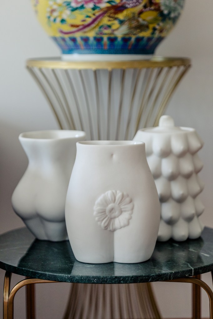 También están sus jarrones y ánforas de estilo asiático, emblemas de la abundancia del espítiru. O sus adornos de caballos, esos seres libres y salvajes a los que les tiene mucho miedo, pero que al mismo tiempo, le encantan. Junto con estas piezas, los colores, las texturas, los prints, el arte inundan las paredes.