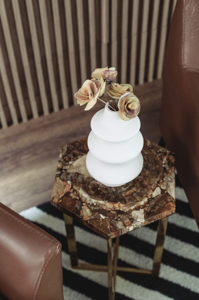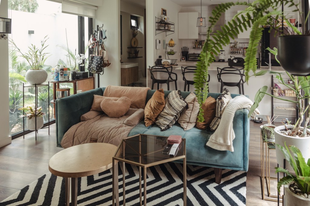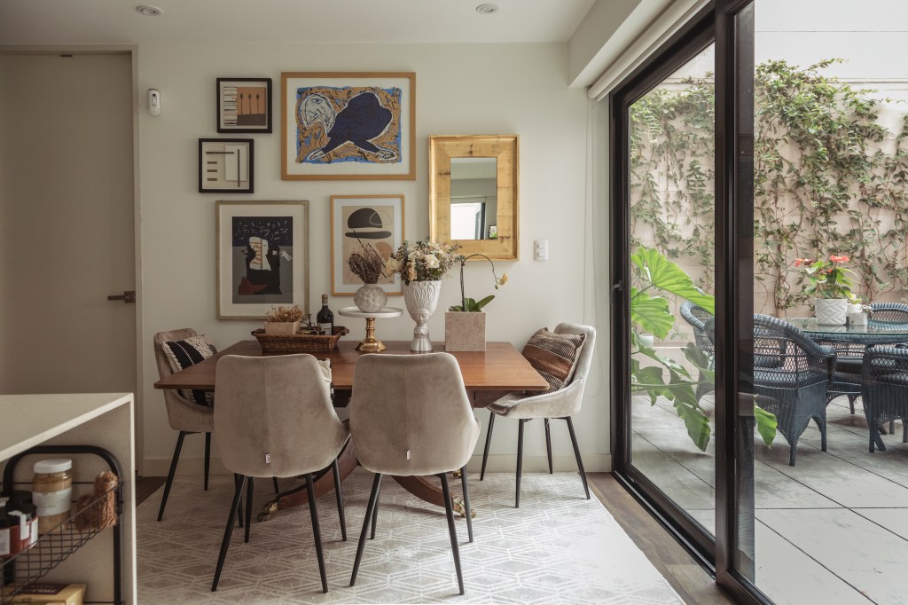 Pasados dos años, el departamento ha ido tomando forma, adecuándose a las preferencias y necesidades de ambos. Y de sus dos perritos, por supuesto. La joven familia ha tenido algunos retos en el proceso; afrontarlos uno a uno ha sido la mejor solución. En casa, la primera misión fue delimitar los ambientes. “Las áreas no son muy grandes, pero sí están bien distribuidas. Por eso era muy importante marcar las circulaciones y aterrizar los espacios con alfombras”, explica Didi. Como arquitecta de profesión, conoce bien todos los tips para aprovechar y disfrutar al máximo de cada rincón. Y es que, aunque la vida acabó conduciéndola por otro rumbo, la arquitectura la divierte e incita su creatividad.