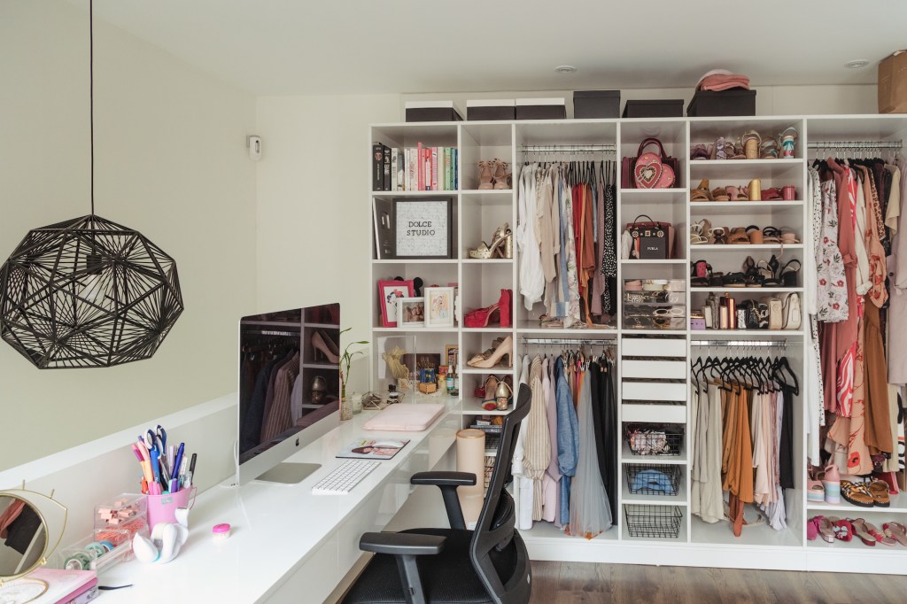 Luego de compartir en sus plataformas digitales los detalles de su nuevo hogar, la pregunta de rigor que surgió de la gran comunidad de Dolce Placard fue: ¿qué hizo Didi para que el clóset compartido no se convirtiera en su peor pesadilla? Como siempre, ella pensó en todo, paso por paso. Lo primero fue rediseñar todos los armarios del departamento para optimizar el espacio de almacenamiento. Y segundo, convertir el estar familiar en una suerte de oficina y walk-in closet de ensueño: así nació el Dolce Studio.
