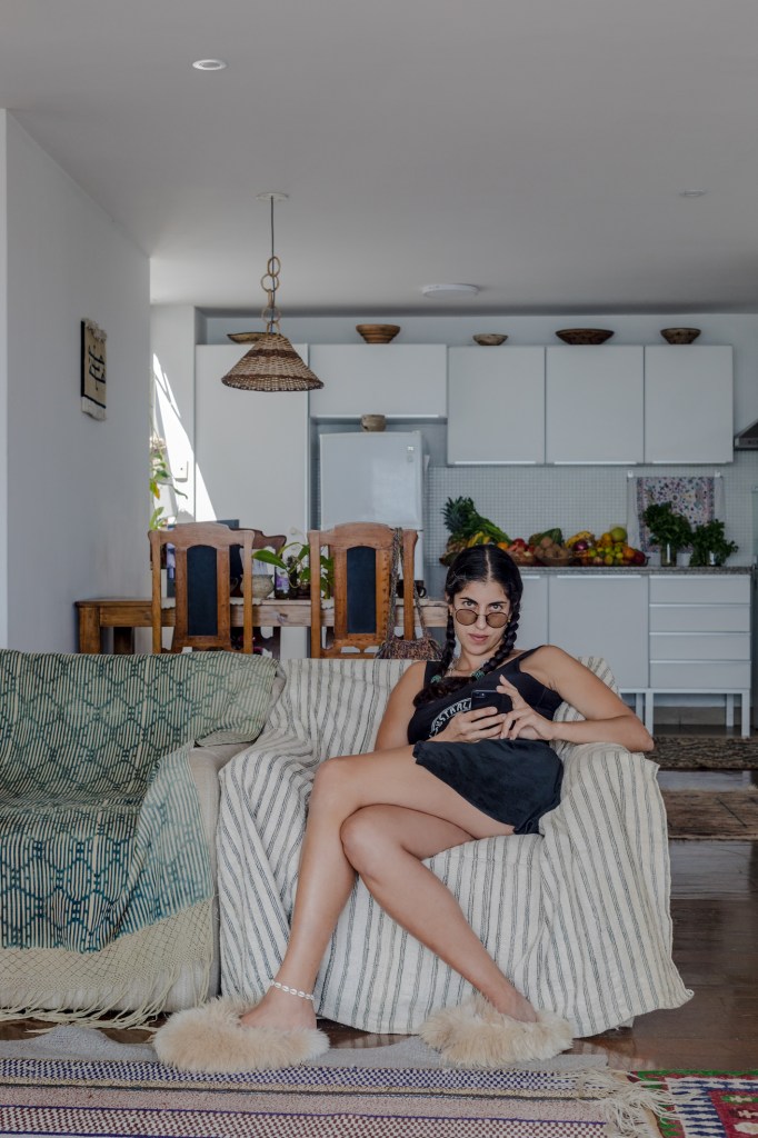 En realidad, se trata de una casona que hace unos años fue remodelada y se convirtió en una gran casa de playa, así la percibe ella. La diseñadora conoció este lugar porque unas amigas inglesas vivieron aquí: cuando terminaron el documental que estaban filmando y estaban por irse del Perú, le preguntaron si se quería quedar con la casa. En ese momento, Mozhdeh vivía en un Airbnb. No tenía planeado ocupar un espacio así de grande, pero la casa era tan linda, luminosa y buena vibra, que aceptó de inmediato. Ya van a ser cuatro años. Ahora se ríe, porque todo el que entra a su casa sale diciéndole: “El día que te vayas de aquí, por favor avísame”.