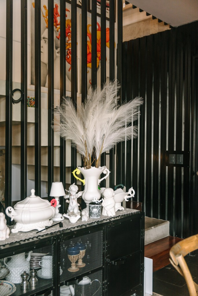 Cal empezó a vivir la cuarentena con los espacios listos, pero los cambios siguieron dándose. Incluso, fueron aún más significativos. Después de un tiempo, decidió abrir todas esas cajas donde guardaba los jarrones, candelabros, bowls y adornos que usaba para sus eventos, y en lugar de tenerlos almacenado y que incluso se malogren, decidió repartir buena parte de ellos por toda su casa. “Me di cuenta que las cosas las teníamos que usar”, explica Cal. “No sabíamos qué iba a pasar, ni siquiera sabíamos si los eventos iban a volver. Así que saqué todo lo que estaba en mi almacén y lo empecé a vivir”.