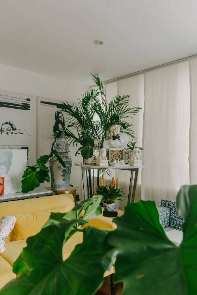 Hace poco, cambió los colores del sofá, pintó una de las paredes de negro y colocó algunas piezas decorativas nuevas. Como se trata de una construcción del año 51, hace no mucho reventaron las tuberías, por lo que la pared del fondo de la sala quedó pelada. Al inicio, hizo un par de intentos por pintarla, pero el problema se ha repetido ya en varias oportunidades, por lo que simplemente ha dejado que el descascaramiento forme parte del arte.