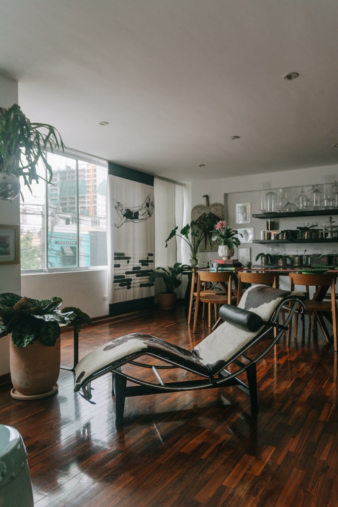 El departamento de Mili, curiosamente, se parece mucho al de Amaro, pero no porque él la haya asesorado al momento de decorar. “Tenemos esta onda desarrollada por ósmosis, solo que cada uno dentro de su propio espacio”, cuenta el diseñador. Por alguna extraña razón, dice él, en su grupo de amigos existe una estética muy similar. “Minimalistas, no somos. Colorinches al mango, exóticos, de todas maneras. Tenemos una energía que hace que por más que queramos ser tranquilos y sutiles, no nos salga”, comenta con su sonrisa franca y desparpajada. Se nota rápidamente que es alguien que crea lazos fuertes, que se impregna de quienes lo rodean y comparte también su propia energía.
