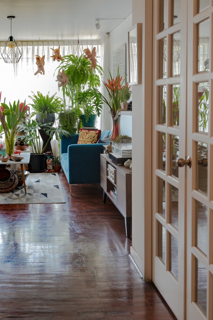 Apenas llegó a este departamento trajo todas las plantas que pudo. Le son necesarias, le gustan y las conoce bien. Se entretiene cuidándolas. Disfruta sus sorpresas. Por estos días, pasan muchas plantas por su cabeza. Es algo que aún no descifra. Mientras se comunica con las especies de su departamento, está buscando algo. La señal de la que hablaba. Por eso, sabe que este espacio está cumpliendo un rol que, de seguro, va a ser parte de sus próximas obras.