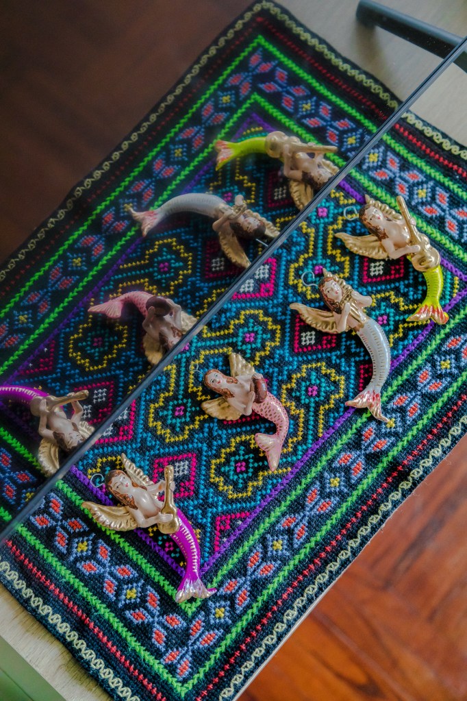 En el comedor de sillas coloridas, destacan unos platillos voladores de cerámica de Agustina Valera, un elemento extraño que también le atrae mucho a Christian. En cuanto al arte tradicional, tiene piezas de maestros de Ayacucho, Cusco, y de distintas localidades de la Amazonía. Bendayán los asume como arte contemporáneo y están en diálogo con sus otras piezas. Nunca ha hecho distinción en su apego por el arte tradicional y el que siente por el arte contemporáneo urbano. “En el mercado funciona diferente, pero estoy seguro de que tarde o temprano eso se va a diluir y todo va a pasar a un mismo nivel de crítica y de valoración en los diferentes espacios”, reflexiona.