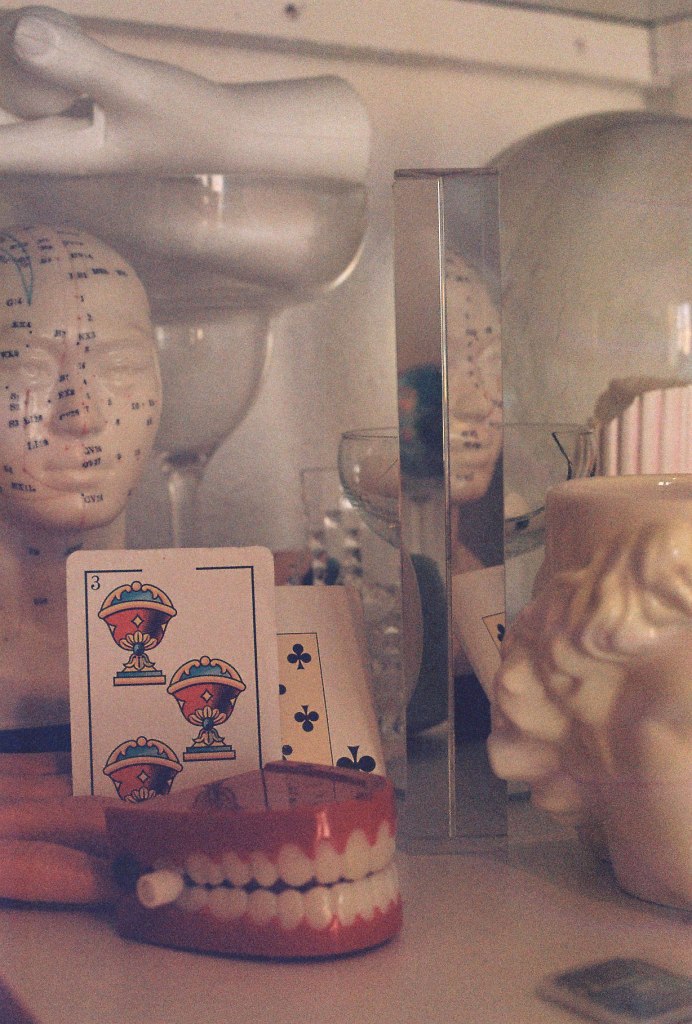 La oficina de Dora conecta directamente con su dormitorio, pese a la cercanía nos cuenta que logra abstraerse totalmente a la hora de trabajar. La repisa está llena de objetos que han ido recolectando a lo largo de los años. “Nuestras cosas son nuestros tesoros, he ido trayendo muchas de Lima porque me gusta vivir rodeada de ellas. También me vine con libros a los que les tenía mucho apego y que no quería dejar y acá hemos ido agrandando la biblioteca. Mi trabajo me demanda estar siempre en busca de cosas para distintas producciones, muchas veces me las quedo, así llegó la Venus y la bola de cristal, recorrer los rastros de Madrid es un verdadero placer”.