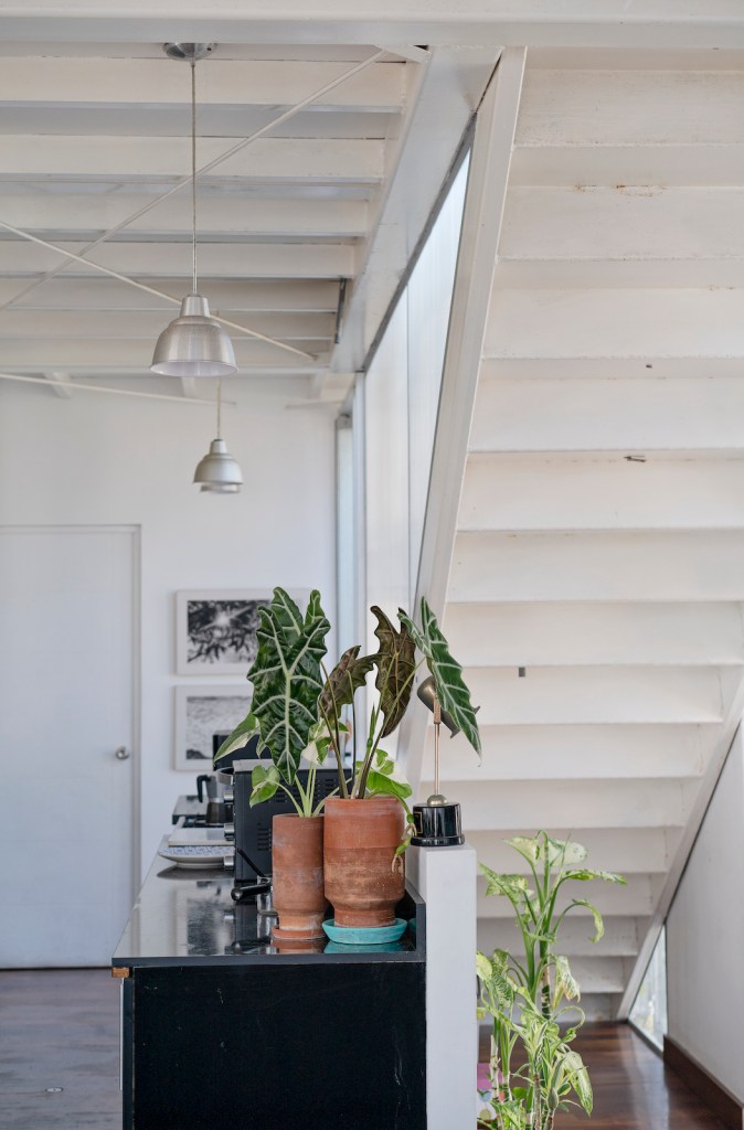 Con el tiempo, su vista al malecón se ha ido haciendo más frondosa. Durante el primer año de pandemia usaron mucho la terraza: almorzaban todo el tiempo al aire libre, Claudia hacía yoga con sus vecinas. Ahora que la vida va volviendo a las dinámicas fuera de casa, ella es la que pasa más tiempo arriba, sobre todo en su taller. A veces siente que tiene que estar constantemente produciendo, sin permitirse parar… En plena cuarentena le sobrevino una crisis entre la crianza de sus hijos, mantener la casa y sentir que todo funcionaba bien. Hoy piensa que sus plantas la ayudaron a equilibrarse. En su cuidado encontró un norte, una tranquilidad. Una presencia que nutre los ambientes de su casa tanto como los distintos momentos de su vida.