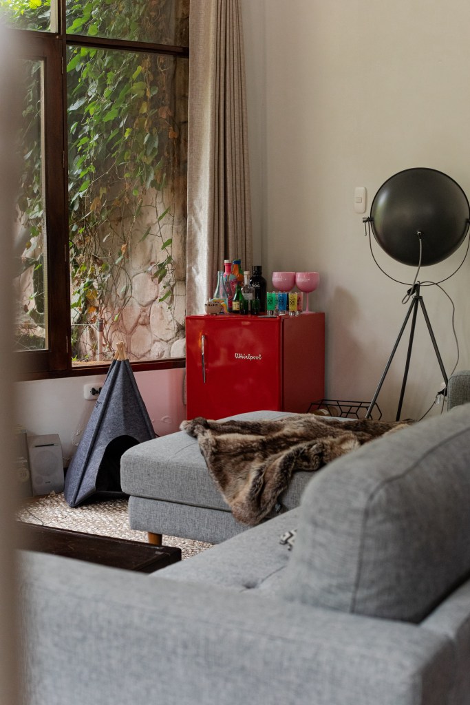 La casa venía solo con el comedor circular, la primera tanda de muebles la trajeron en un camión desde Lima: la cama, las mesas de noche, el mueble arenero de los gatos, adornos, libros y las plantas de Nicolás. Mientras ellos se mudaban y acomodaban, la dueña de la casa había montado una estación de carpintería en el jardín porque el tercer y cuarto piso de la casa se estaban terminando, así que los chicos aprovecharon para pedirles a los trabajadores que les hicieran algunos muebles que hacían falta, como el aparador del comedor y las repisas de la despensa. Se pasaron el primer mes de mudados viviendo entre cajas.