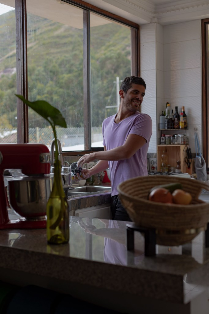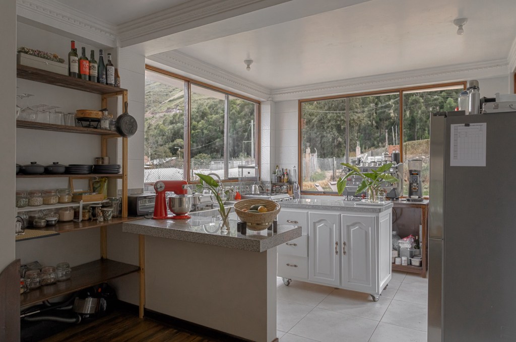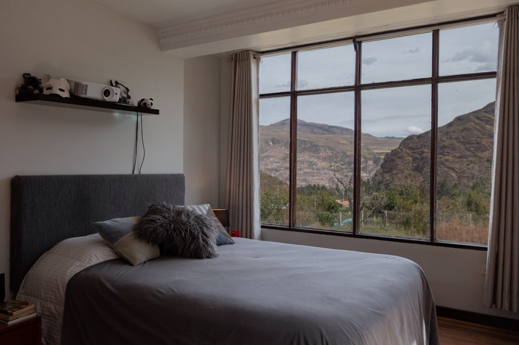 Algo que les importa mucho al momento de buscar un lugar para vivir es la cocina: a ambos les gusta cocinar, particularmente a Nicolás, que pasa mucho tiempo haciendo la comida, algún postre o kéfir (por estos días, está probando preparar mantequilla). La cocina de esta casa es grande y la isla en medio queda muy cómoda, pero sin duda lo mejor es la vista maravillosa: desde la ventana, pueden ver la quebrada que desemboca en el pueblo de Urubamba. Nicolás y Diego coinciden en que esta es la cocina más bonita en la que les ha tocado estar.