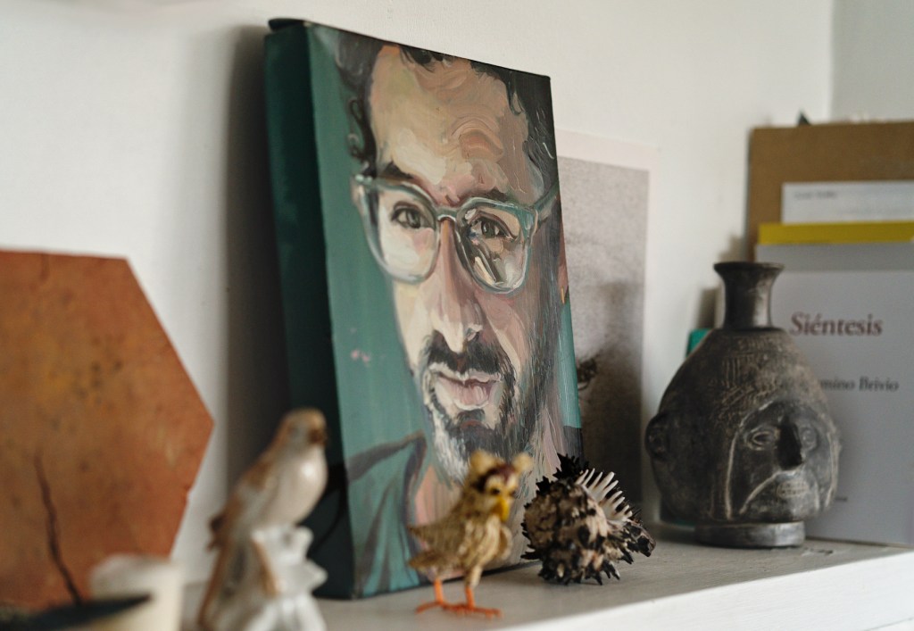 No le costó dejar su depa, que estaba lleno de sus cosas: muebles, libros, adornos, su colección de arte (propio y de otros artistas). Juan Diego necesita rodearse de objetos que le gusten o que lo representen porque su presencia lo hacen sentirse en casa. Al mismo tiempo, nunca se ha enraizado de tal manera que irse le cueste demasiado.