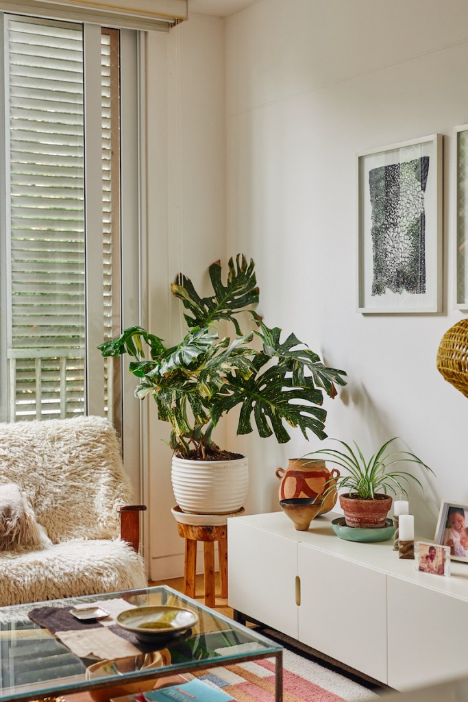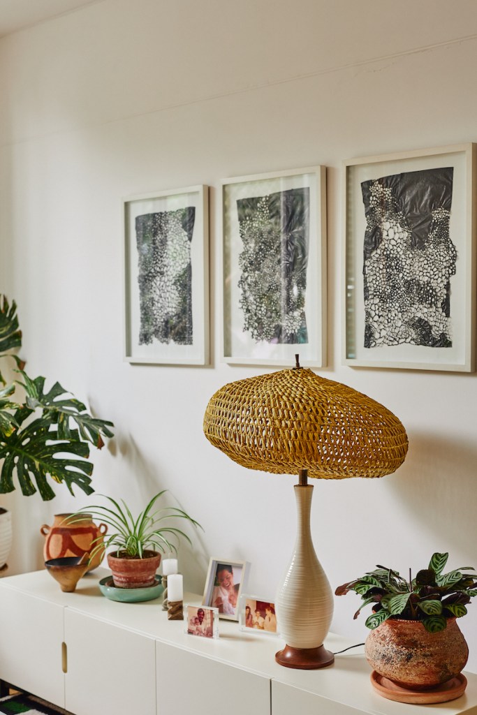 Le interesa el arte y el diseño local y procura comprarse una que otra cosa, así sea pequeña. Además, admira el arte tradicional y le fascina descubrir tesoros en ferias y viajes. Aunque siempre le han gustado las plantas, este depa nuevo ha despertado un placer más intenso en cuidarlas, al ver que responden tan bien. Su árbol y una planta de sábila, que la acompañan desde su casa anterior, se han puesto hermosos. Parece que a sus plantas también les gustó el cambio.