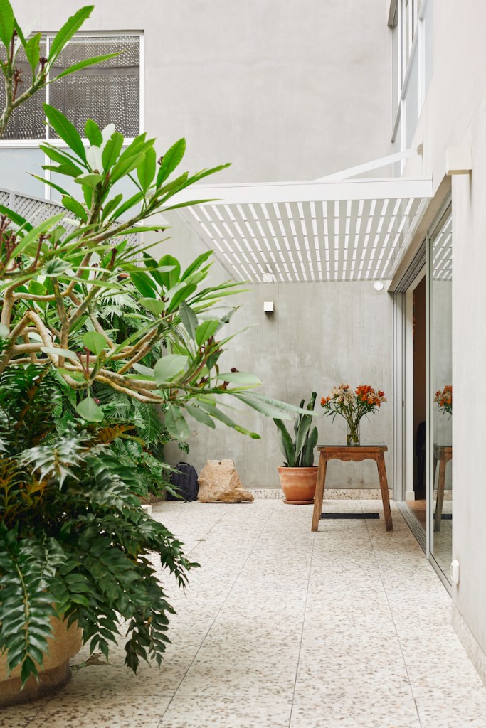 Usan mucho todos los espacios: el patio, las habitaciones, el comedor, el escritorio. Una ventaja de la distribución del depa es que les permite saber que está pasando constantemente en la casa. Desde el escritorio tienen vista a los cuartos de sus hijos; desde la sala y el comedor pueden ver lo que ocurre en la terraza. Precisamente, el núcleo que conecta todo es la terraza. Pero no siempre lució así.