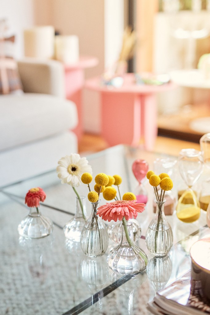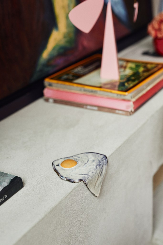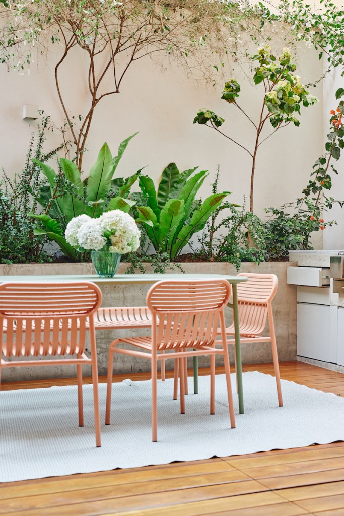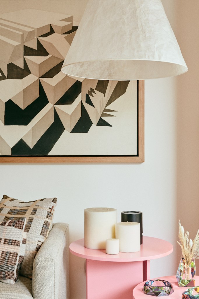 “La casa cambió mucho desde que hicimos Färg. La tienda abrió mi mente. En mi terraza, por ejemplo, que estuvo sin muebles mucho tiempo porque no encontraba qué poner, pensaba colocar una mesa de madera… Buscando marcas para Färg me di cuenta de que quería algo más divertido y de un material que, además, no se malogre, que aguante. Acabé con esta terraza de muebles en rosado y verde que nunca me hubiera imaginado combinar. De alguna manera, mi necesidad la trasladé a la tienda, hay una retroalimentación. La mezcla de colores, marcas y texturas que tenemos en el showroom me animó a buscar algo más arriesgado para mi propio depa. Ahora definitivamente tiene más color que antes”.