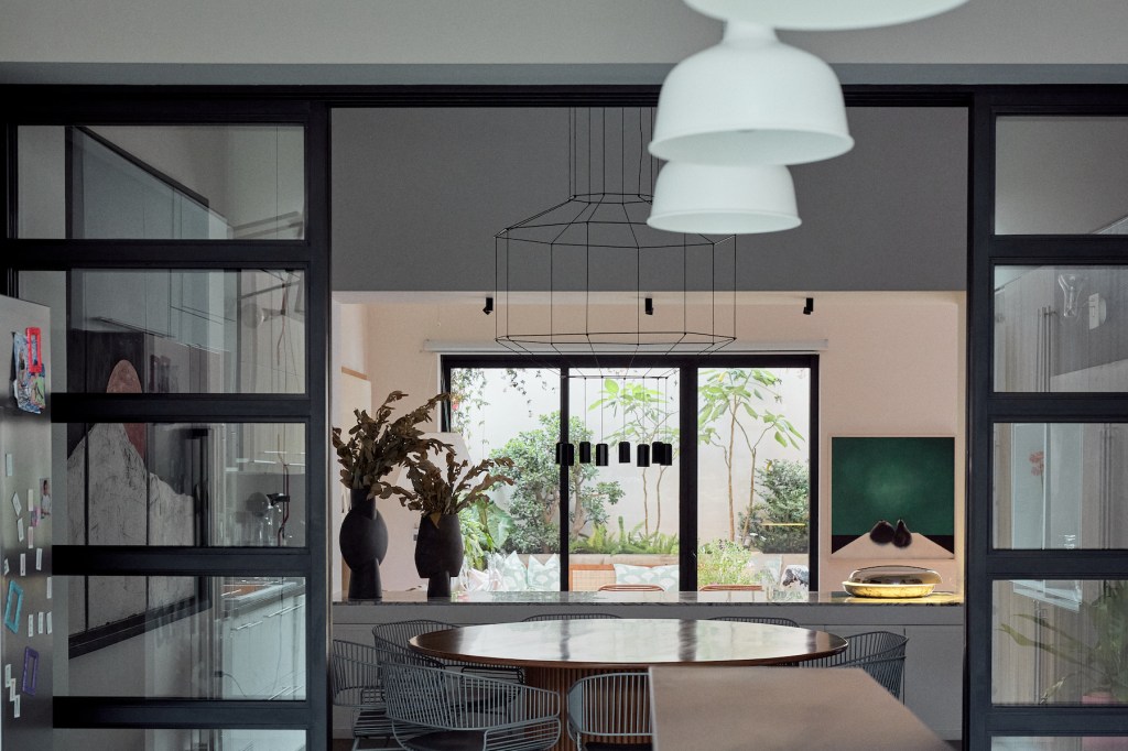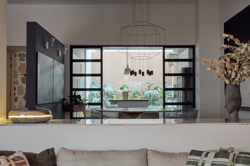 Para ese entonces, ya había nacido su segunda hija. A pesar de que la casa nueva les encantó y tenía feeling, había muchas cosas que querían cambiar. Lo más importante: abrir la terraza que era techada. Tener un espacio exterior era una prioridad para Simonetta y su esposo Andrés: ellos habían vivido en Sevilla, que tiene una luz radiante. De hecho, Simonetta siempre ha vivido en ciudades con luz muy bonita, así que necesitaba incorporar eso en este depa. Una decisión importante fue cambiar la lavandería y convertirla en un jardín. Arriba, en la segunda planta, cambiaron las ventanas que dan a la parte de atrás por otras de cristal más transparente. Todo eso hizo que la luz entre por los dos frentes del depa.