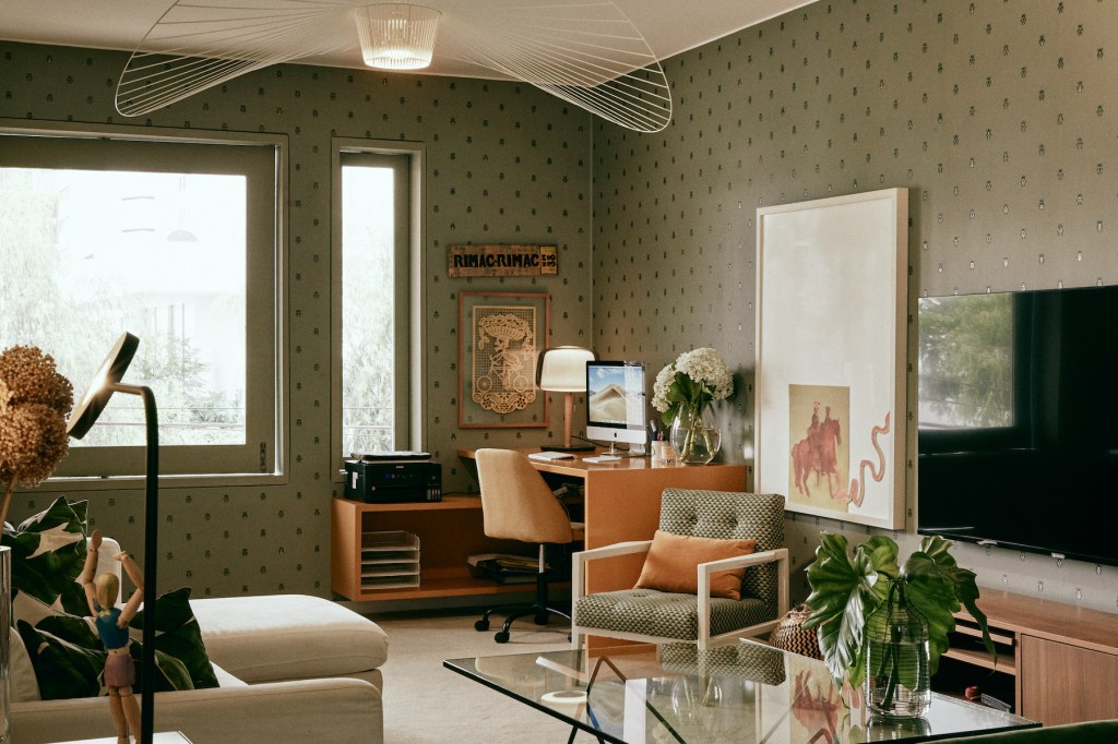 El depa de Simonetta es el mejor ejemplo de esto. Ella no busca una elegancia típica. Le encanta la mezcla, la variedad. Combina piezas de anticuarios de Lima con las lámparas que compraron en Francia o el wallpaper que a Simonetta le encanta y que también ha incorporado al catálogo de la tienda para animar sus clientes a hacer nuevas composiciones. Y gracias a la experiencia de haber mandado a hacer su mesa de comedor redonda y unas mesitas auxiliares para la sala, va a lanzar una línea de mobiliario propia.