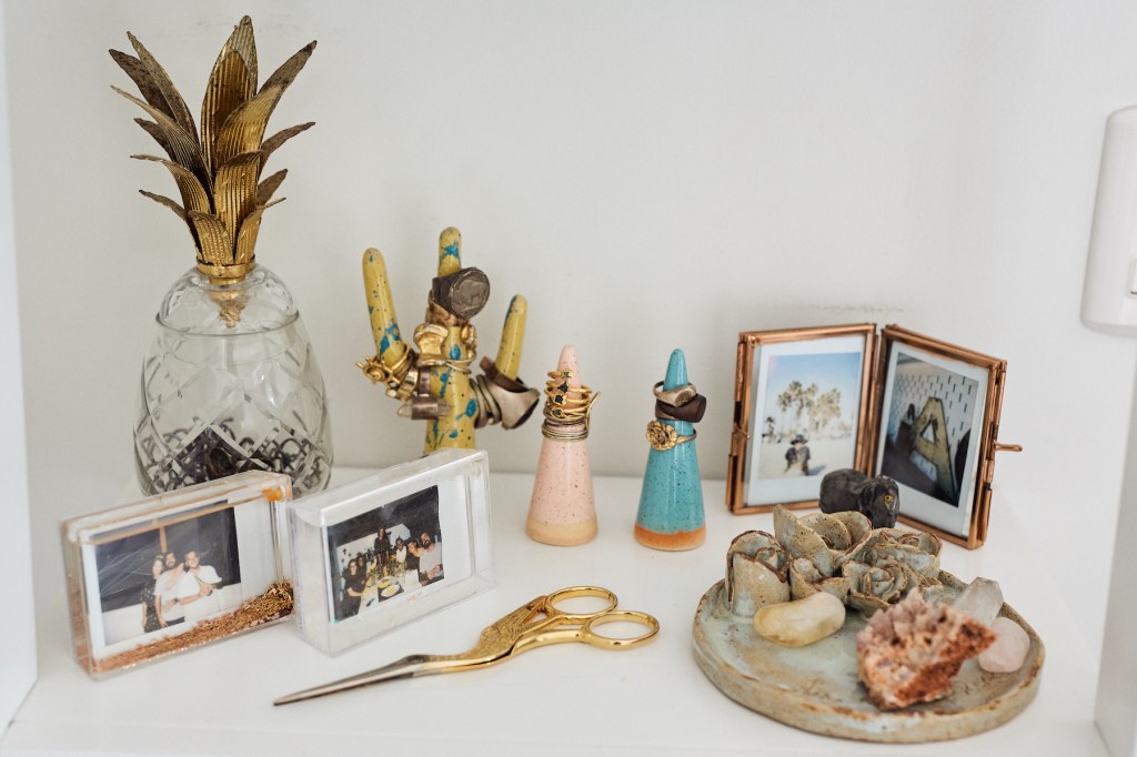 Es complicado que Lele pueda hacer una selección de sus objetos más preciados, ya que todos lo son. No obstante, hay algunos que destacan, como el espejo que está en el comedor, ya que fue la primera pieza que compró cuando llegó al Perú. Están los toritos de Pucará del patio, el arte – como el cuadro de Nuria Zapata en la sala, las piezas de su gran amiga, Gabriela Maskrey, y las fotografías de su novio, Carlos Baca–, y las cerámicas hechas por Altamar, Chiqui García, Coralí Lecca y por Lele misma, además de los sombreros, las plantas y los textiles en todas sus formas que tiene repartidos por la casa.