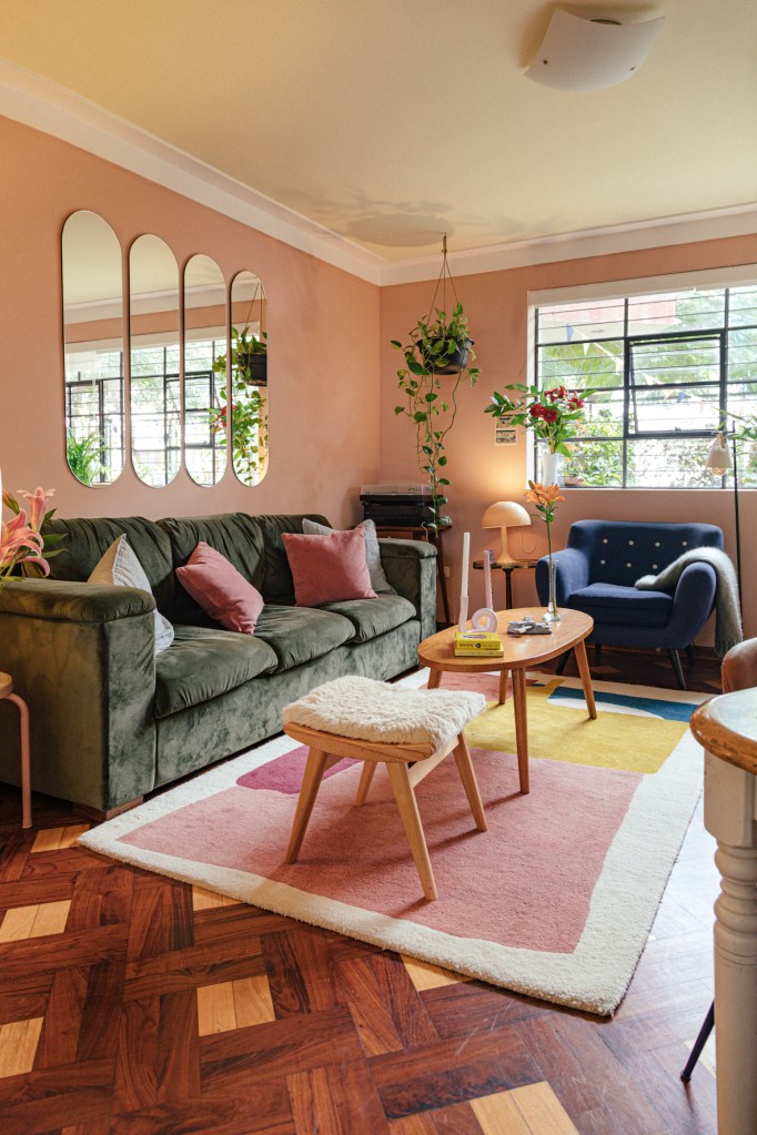 El estilo de decoración no sigue una pauta específica, sino que se rige por la inspiración del momento. Deyna encuentra elementos decorativos que la cautivan y luego va a la Cachina de Surquillo a buscarlos. Después, los incorpora gradualmente en el espacio. Salta a la vista su inclinación por el rosa y su gusto por mezclar colores. Aunque la creación del ambiente no es obra exclusiva de ella, ya que comparte este interés con Richard. A menudo, se sientan juntos en la sala para planear futuras mejoras y modificaciones. Con un toque de humor, Deyna cuenta: «Ya tenemos planeados los siguientes siete proyectos del depa».