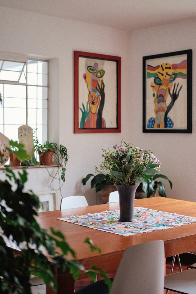 “La casa se recompuso para atenderme a mí, para cuidarme”, recuerda Mariana. El cuarto se llenó de sus medicinas y cremas, acogió una nueva y amplia cama y se acomodó para “recibir”: y no solo a las visitas, que no faltaban, sino también los montones de regalos y electrodomésticos que le enviaban todas las personas que querían darle apoyo y enviarle sus deseos de pronta recuperación. “Fue muy poderosa esta sensación de que el amor cura [frase que exhibe una serigrafía obsequiada por una amiga, firmada por el artista Elliott Túpac]. Y también fue muy interesante el proceso de ‘adaptarnos a la adaptación’ de la casa”.