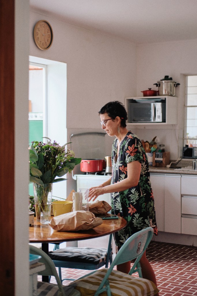 Se toma un poco más de tiempo para entrar en contacto consigo misma, para prestar un poco más de atención a su cuerpo y a lo que siente. Su rutina matutina es más larga ahora que debe aplicarse una serie de cremas y acomodarse la manga de compresión que le permite proteger uno de sus brazos; pero eso está bien. Se sienta en calma en la mesa de la cocina a tomar un té y a organizar el día sin prisa. “Todo eso es necesario para mi salud y mi futuro. Digamos, para seguir viva. Pero también me sirve como un recordatorio para no volver a desenfocarme”, reflexiona. Este cambio forma parte de un proceso en el que su hábitat ha cobrado la importancia de ser un espacio que acoge, acompaña y sana.