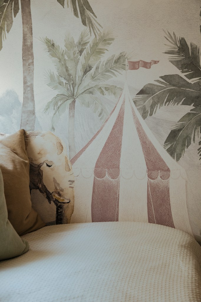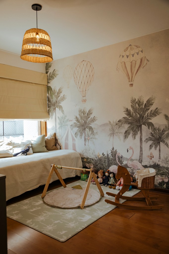 La habitación de Olivia tiene un estilo propio, distinto al resto de la casa. Su cuarto empezó por el papel de pared, un regalo de su madrina. Les encantó que tuviera animales y mucho verde, pero que también hubiera un elemento mágico, de ilusión. El espacio donde Jose hace su practica diaria de yoga –del que incluso es profesora– cambió recientemente para volverse un lugar adicional de juegos, donde ambas, madre e hija, pasan gran parte del tiempo.