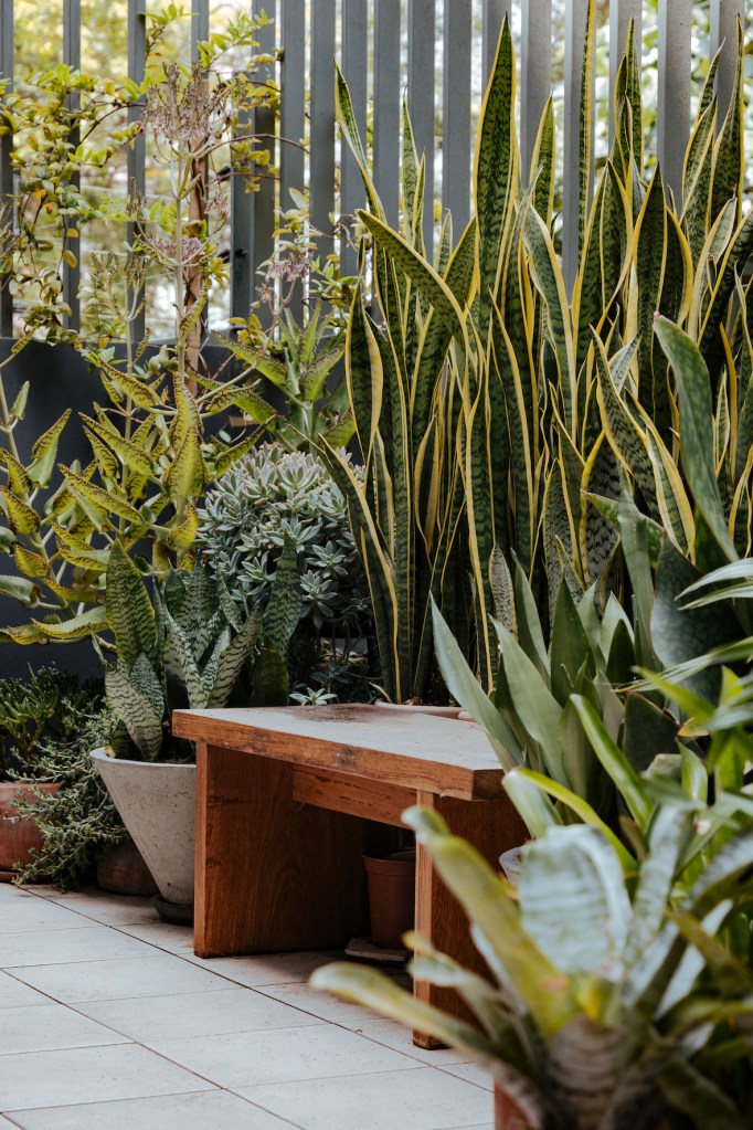 Un grupo de bromelias domina la terraza. Ahí también se encuentra un árbol de jade de entre 40 y 50 años que perteneció a la abuela de Jerónimo. Por el calor que ha hecho este verano empezaron a regarlo más seguido sin saber que el drenaje estaba tapado y casi se muere, pero lo recuperaron con una poda extrema, un cambio de tierra y un poco de canela. “La gracia con las plantas es que las tienes que observar. Es común que me digan que no las saben cuidar porque un día voltean y sus plantas están muertas. Y yo les respondo que eso solo pasa si no las han mirado durante semanas”, cuenta Jerónimo, quien encuentra en la jardinería un momento de contemplación y relajación de la vida agitada de chef. Fundó el restobar Barra 55 y dirige el restaurante barranquino Pan Sal Aire con la idea de ofrecer una carta pequeña pero cambiante, con ingredientes orgánicos y de alta calidad. Un espacio casual pero gourmet.