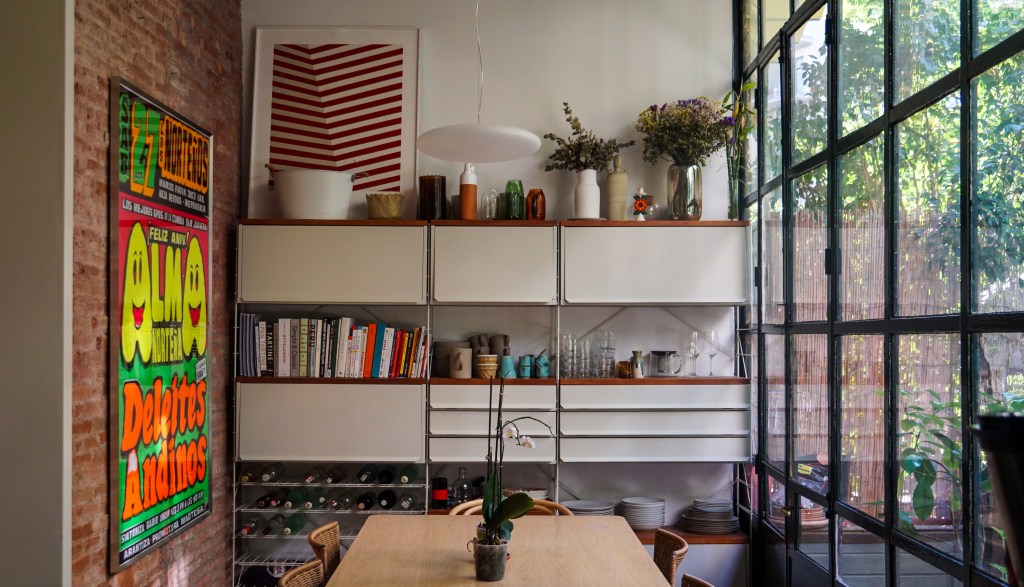 Acomodar la casa ha sido un proceso lento. Salvo algunas cosas que ya estaban, como la estantería de la cocina o la mesa del comedor, Celia compró casi todo lo que existe hoy en la casa, hasta los armarios. También reestructuró los ambientes, de tal manera que el comedor ahora da a la terraza. A Celia le encanta cocinar y, sobre todo, tener invitados en su mesa. Así que la idea de una cocina abierta e integrada al comedor, con la mejor vista y con mucha luz natural durante el día, le va de maravilla. De esta manera, tiene mucho espacio para cuando le provoca atender a gente. Además, el ambiente resulta tan claro y acogedor que es el lugar que elige cuando tiene que trabajar en casa.