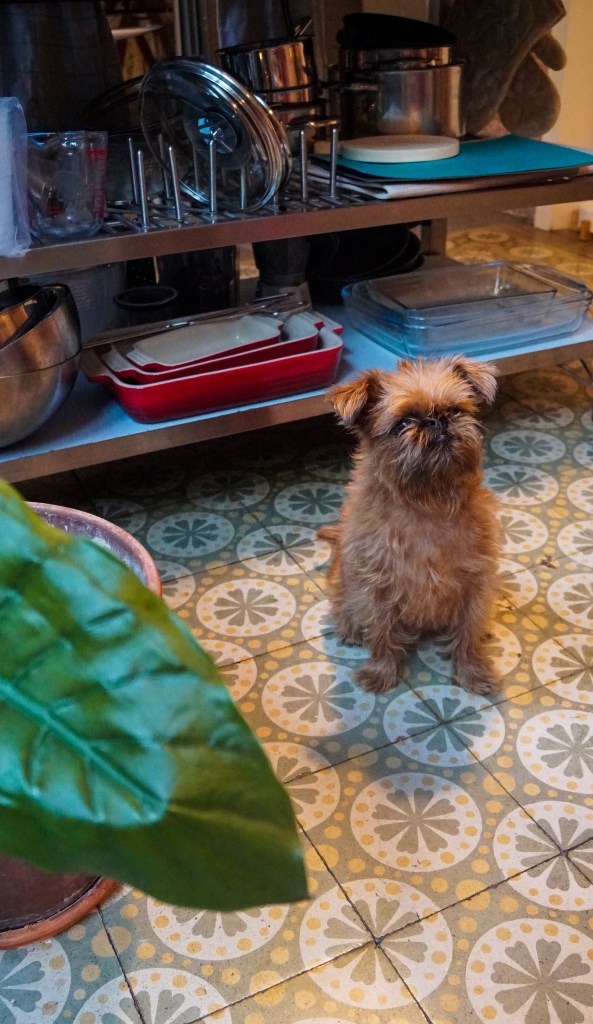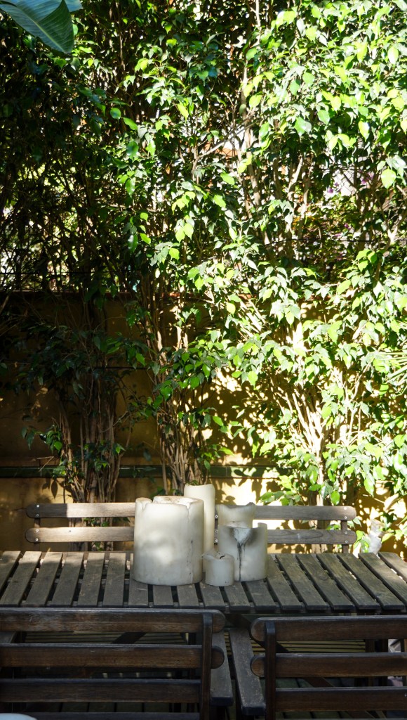 Vive en un edificio antiguo de L’Eixample, de esos señoriales, en el piso que solía ser el principal. Por eso su depa tiene techos altos y un patio estupendo. Se mantienen varios elementos originales, como las molduras y el piso hidráulico. Su terraza es particular porque está emplazada en diagonal y eso evitó que quede encapsulada por los edificios aledaños. Desde su deck de madera rústica, muy poblada por las plantas que rodean toda la terraza, se puede ver el cielo y no te sientes tanto en la mitad de la ciudad. Ya va más de tres años viviendo aquí, acompañada de su perrita Pompeya, que llegó un mes después de que Celia se mudara.