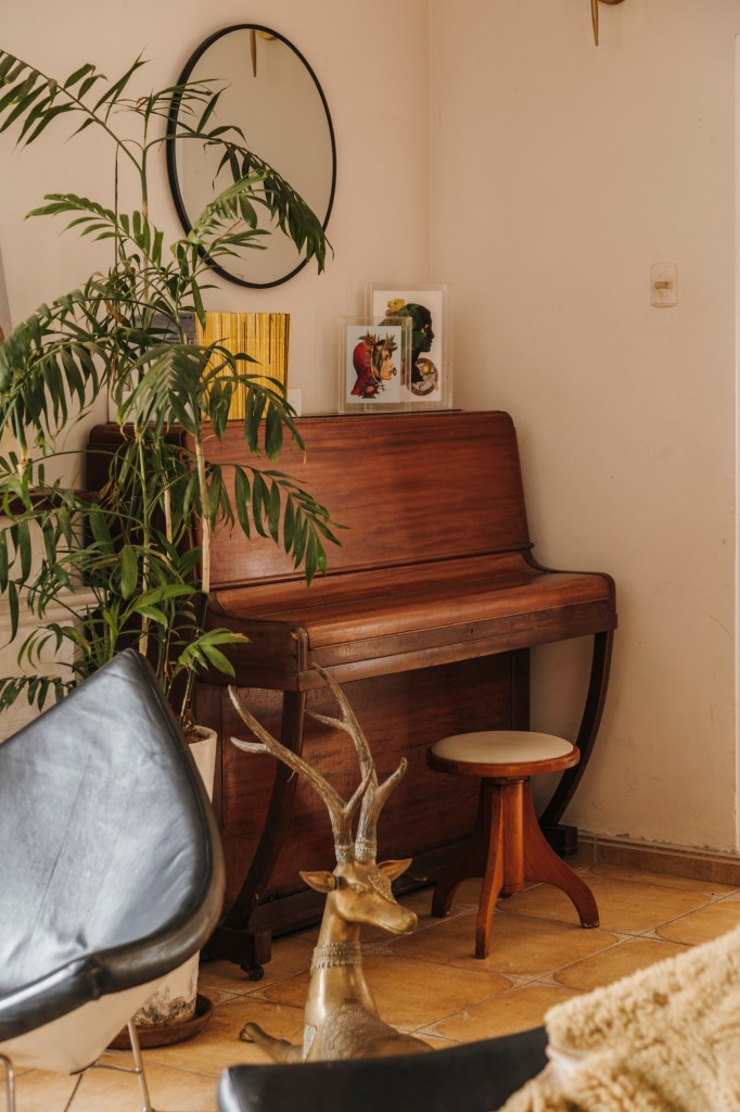 Los colores cálidos ayudan a que esta calma se mantenga, así como la chimenea en la sala. La mesa y las sillas del comedor se ven pesadas y están allí porque tienen un peso más importante, el emocional. “Mi papá trabajaba en una fundición y él hizo esos muebles. Me gusta tener las cosas que hizo cerca y recordarlo de esa manera”, explica Talía.