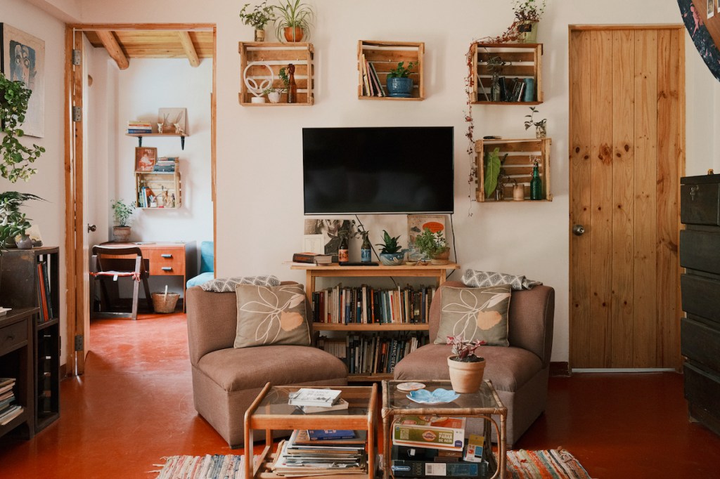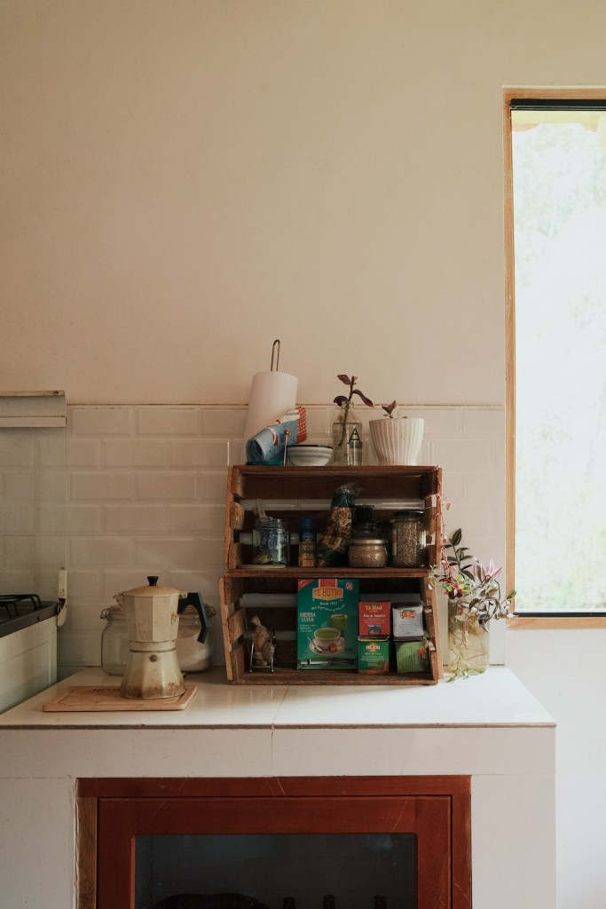 También compraron cosas localmente, sobre todo para almacenaje, pues la casa no tiene armarios. Luciana ha desarrollado una especie de adicción a comprar jabas de frutas en los mercados y hacer estantes con ellos. Además, cada vez que va al pueblo regresa con una nueva planta.