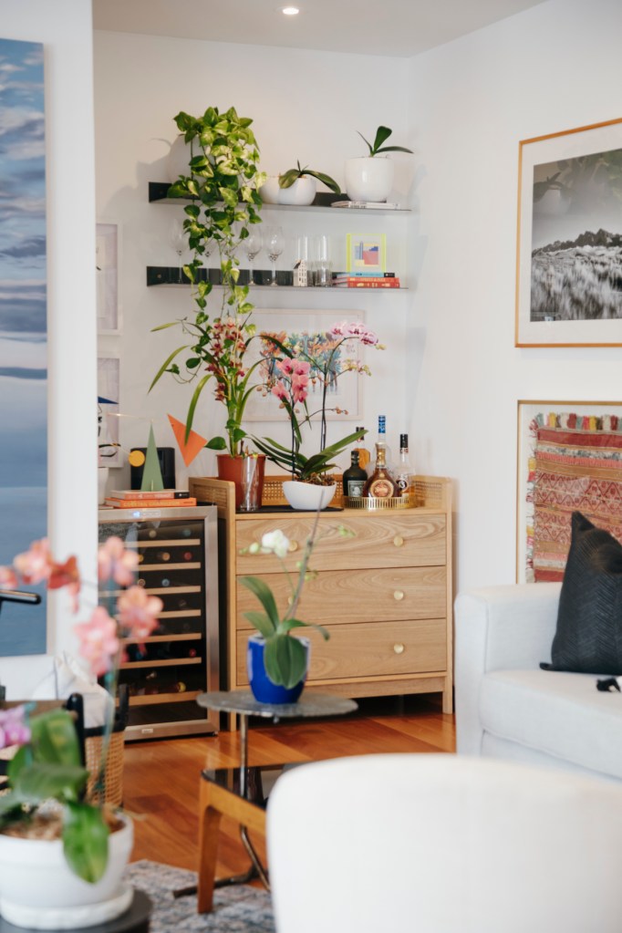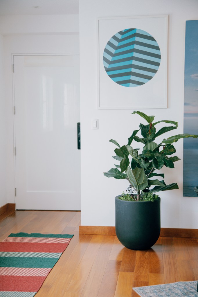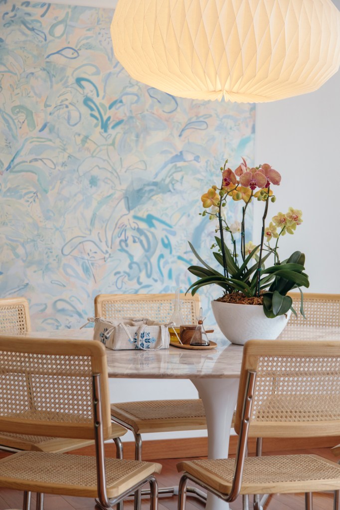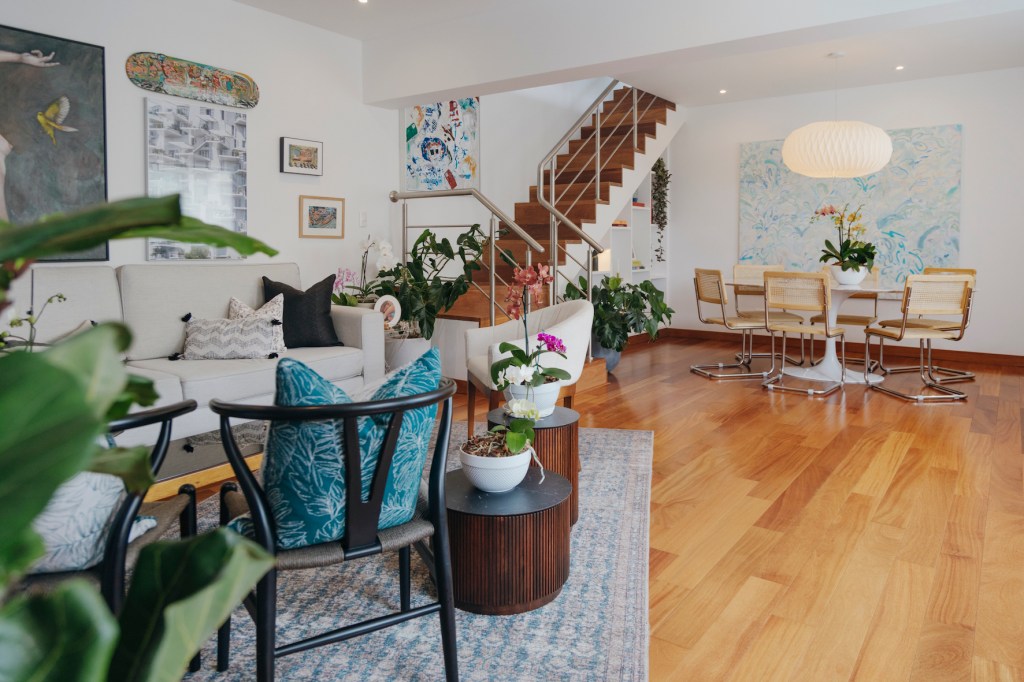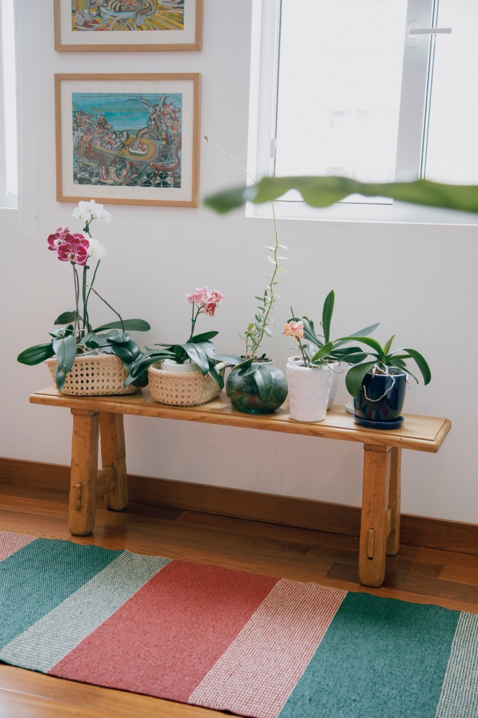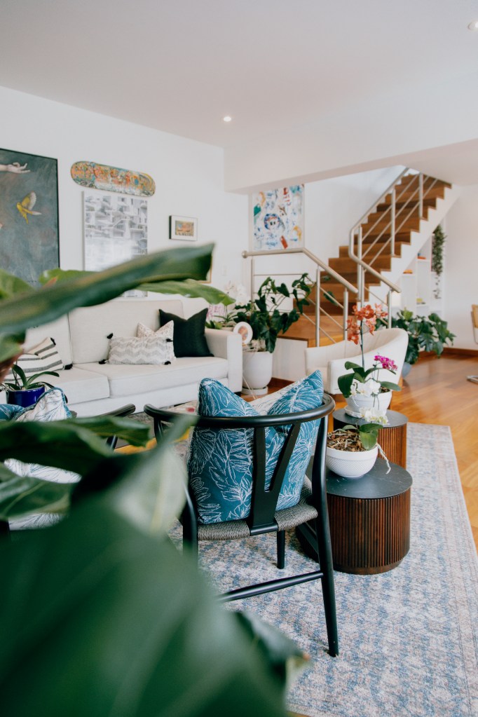 Ambas pinturas están en la sala, rodeadas del color que emana también de otras piezas de arte, objetos decorativos y plantas. Esta expresión ya no la encontraba en su casa anterior. “Algo se había apagado en ese lugar. Es tan importante cuidar de un espacio… Y vivir en penumbras ya no era una opción para mí. Así que venir aquí y ver cómo se puede recuperar es lindo. Me encanta el color. Va con mi personalidad y es bueno saber que mi casa tiene tanto de mí y de mi hijo”, dice.