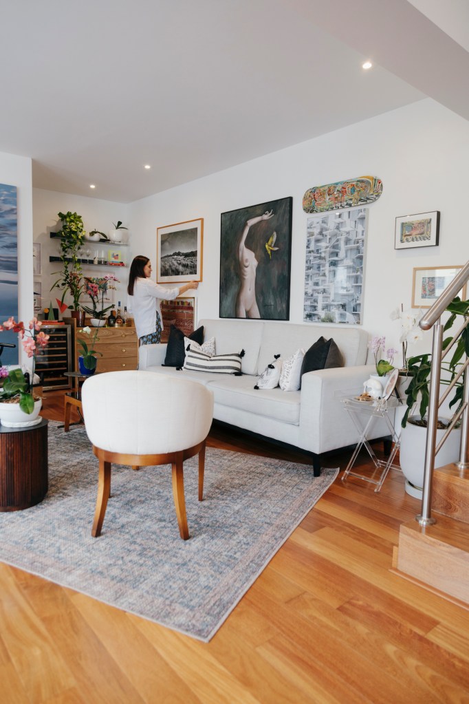 A diferencia de otras mudanzas, aquí Nicole fue paso a paso y no compró todo de golpe. “Con el tiempo aprendí que es mejor ir viendo qué encaja y qué no. Los objetos también te van encontrando, dependiendo del momento en el que estés”, comparte ella. Tiene razón. Por muchos meses, le echó el ojo a un cuadro del artista Mateo Cabrera. Lo vio en redes sociales, luego en revistas, hasta que por fin hablo con él, quien le aseguró que se lo guardaría. Lo mismo sucedió con una obra de Laura Cuadros: “Vi que la estaba pintando, la contacté, nos juntamos y parecía que nos conocíamos de otra vida. Me pidió que espere unos meses hasta que termine el cuadro. Esperé con calma y ahora está aquí y tiene el mejor nombre: ‘Calma para Nicole’”.