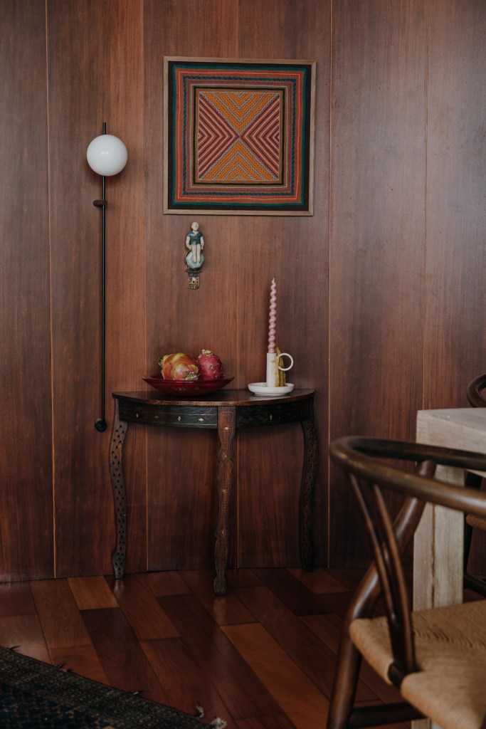 Diseñar para una misma no fue fácil. “Llega un punto en el que te bloqueas de tanto pensar”, confiesa Roxana. Pero al final, lo resolvieron como suelen hacerlo: desde la experiencia y la intuición. Algunas piezas que diseñaron para otros proyectos terminaron encontrando su lugar en este hogar, como un banco partido en dos o una consola reciclada de una instalación anterior. “Muchas veces no te das cuenta de lo que necesitas hasta que lo ves en otro lado”, aseguran.