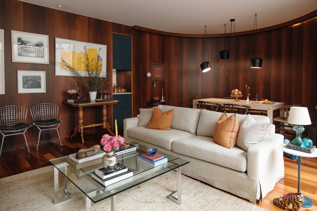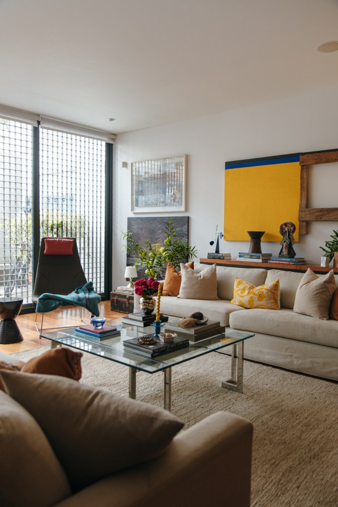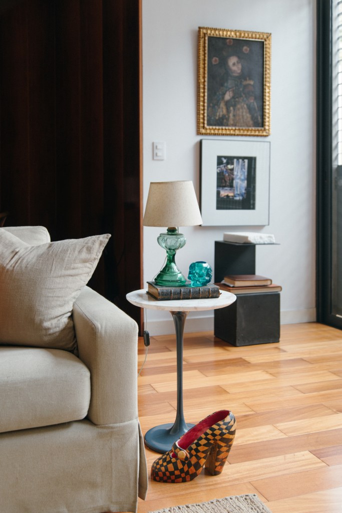 Ubicada en una zona tranquila y residencial de Miraflores, el depa fue proyectado originalmente por la arquitecta Mariana Leguía, con quien Roxana colaboró desde el inicio. Sin embargo, pronto surgió la necesidad de repensar algunos conceptos y ahí fue cuando el instinto de diseñadora y habitante se activó. “Yo necesitaba que hubiera un corazón en la casa”, cuenta. Ese corazón terminó siendo una sala de estar que se conecta con la cocina y que se abre al patio, reconfigurándose el gran centro de la vida del hogar.