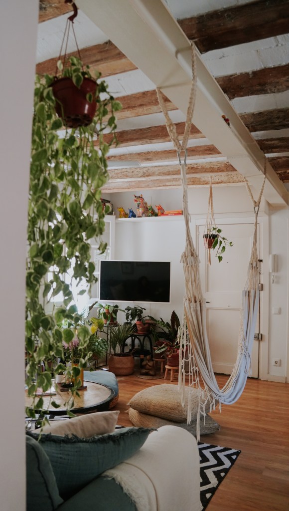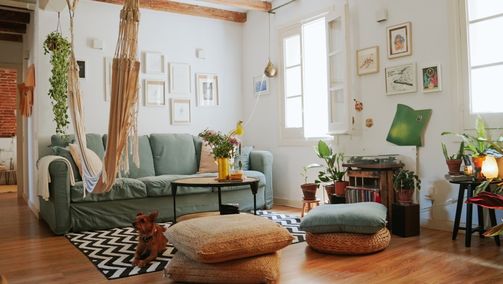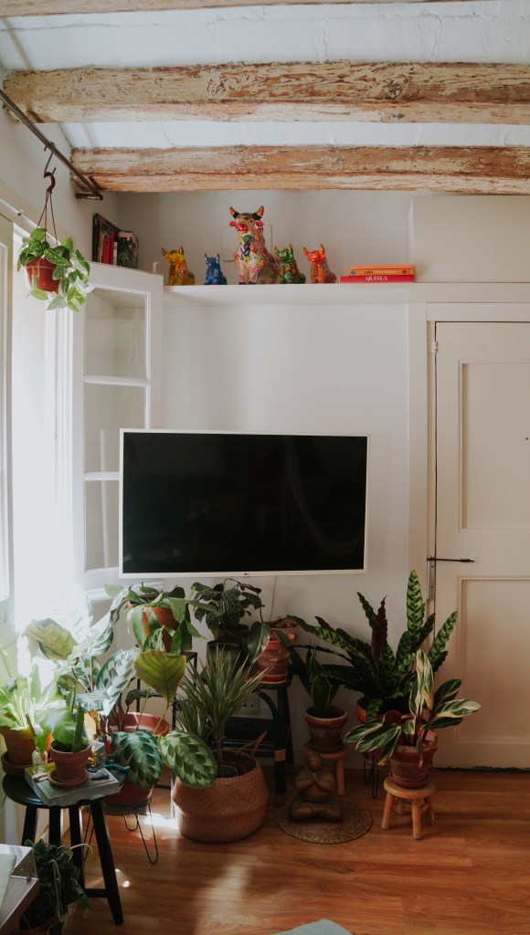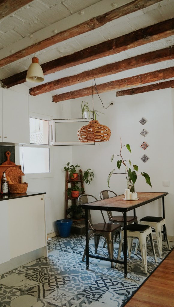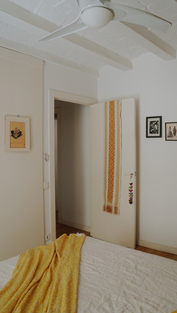 Llegó al depa que ocupa en el barrio de Gracia en el 2019, luego de separarse de su pareja. Una amiga se sumó como roommate y así pudo llevar mejor el alquiler y la vida cotidiana. Ha tenido suerte y siempre que una compañera de piso se iba, ha encontrado a otra buena amiga que ocupe su lugar. La dinámica diaria ha estado marcada por la amistad y una buena energía, son cosas que, sin duda, se han impregnado en el depa que se siente fresco, luminoso y tranquilo. Su última compañera de piso se fue hace un año: desde entonces, ha vivido sola.