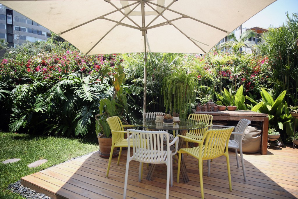 Es una mañana calurosa y Elke Neustadtl nos recibe con una jarra de té helado recién hecho. Nos sentamos en la terraza techada junto al jardín, curiosamente ubicada frente a un pequeño, cálido y luminoso escritorio. “Lo puse ahí en pandemia”, cuenta ella. Y aunque ahora la terapeuta tiene un consultorio externo e incluso otro lugar adicional de trabajo fuera de casa, no piensa modificar este rincón. “Me encanta trabajar aquí. Me encanta estar en casa”, explica. No es difícil entender por qué.